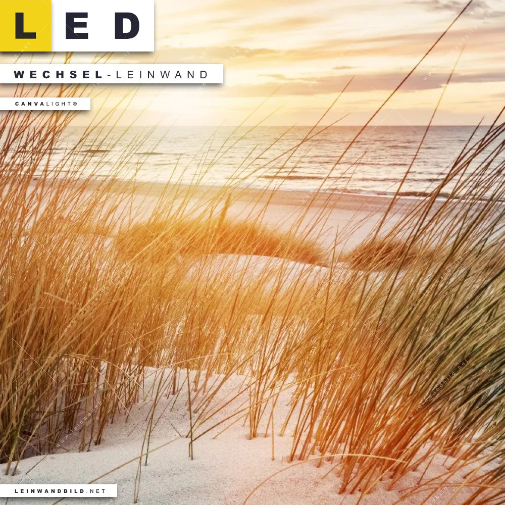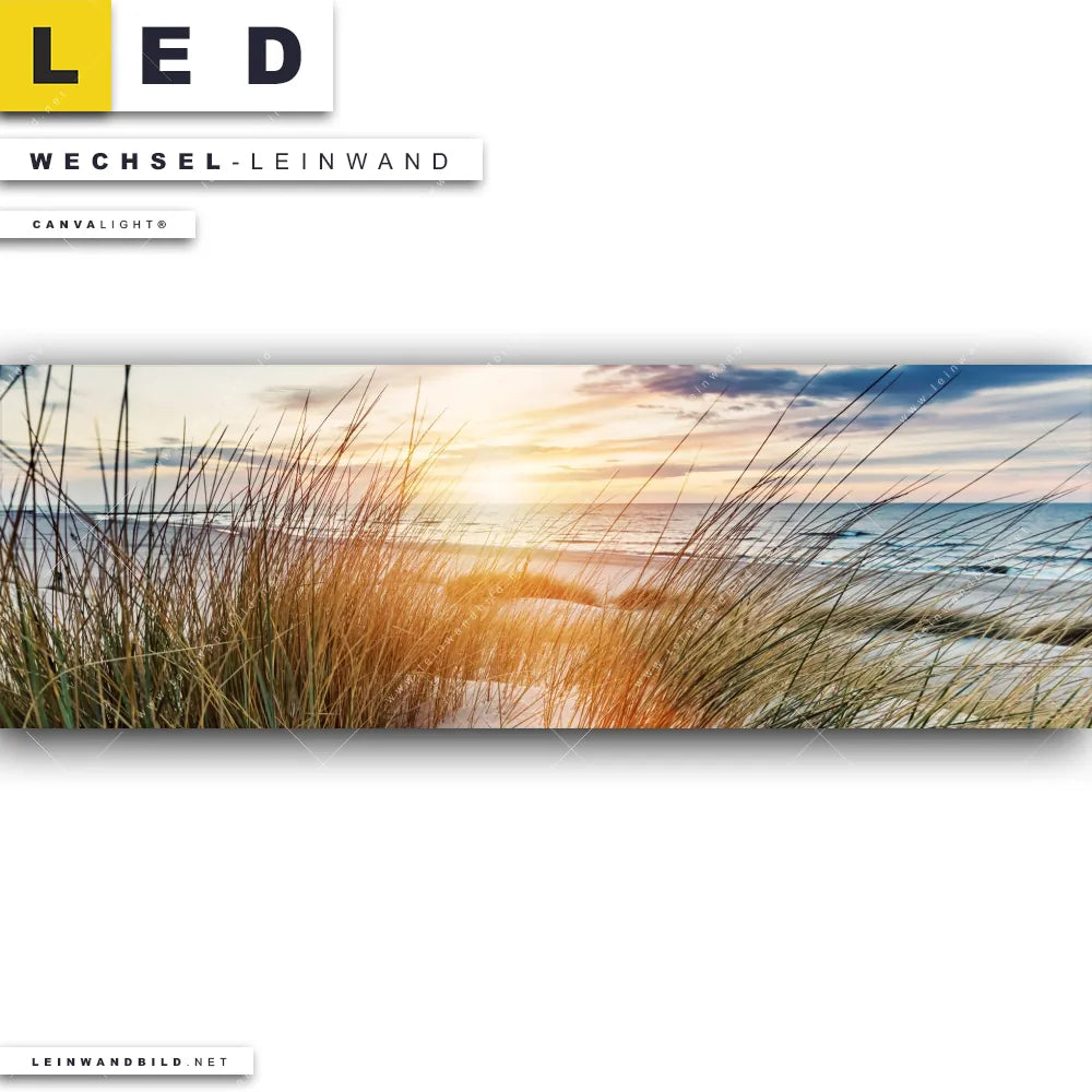 Du bist auf der Suche nach einer Landschaften, Strand - Meer Wechsel-Leinwand für Dein LED-Leinwandbild im Panorama-Format? Begriffe wie Deutschland, Sommer, Ostsee - Nordsee, Urlaub - Reisen, Sonnenuntergang - Sonnenaufgang, Dünen, Gräser, Frühling haben Dich auf der Suche nach Deiner Ersatz-Leinwand für dein extra breites LED Wandbild mit wechselbarer Leinwand inspiriert? Farben wie Grün, Beige, Blau dürfen auf Deinem neuen Wechselmotiv für Dein XXL Leinwand-LED-Bild nicht fehlen und Leinwände im Natürlich - Realistisch, Retro - Vintage Stil für Leuchtbilder passen perfekt zu Deinem Einrichtungsstil?