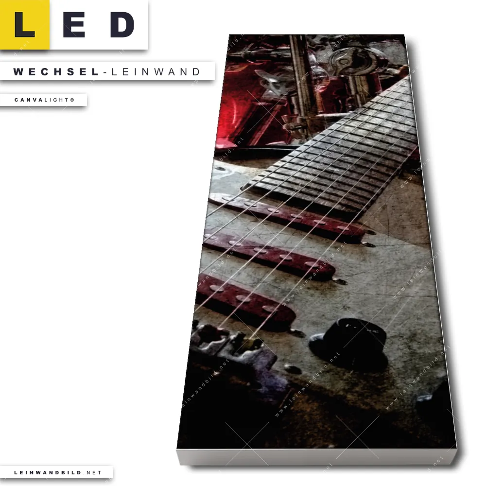 Du konfigurierst Deine individuelle LED Wechsel-Leinwand Canvalight® TEX | E-Gitarre Retro Look | Schmal und wir produzieren sie NEU für Dich. Unsere Porträts - Menschen Austausch-Fotoleinwände für Canvalight® LED Bilder sind KEINE Lagerware. Du bist Dir unsicher, welches Motiv oder Format das richtige für dein individuelles LED Wechselmotiv auf Leinwand ist, dann helfen wir dir gerne weiter und beraten dich!