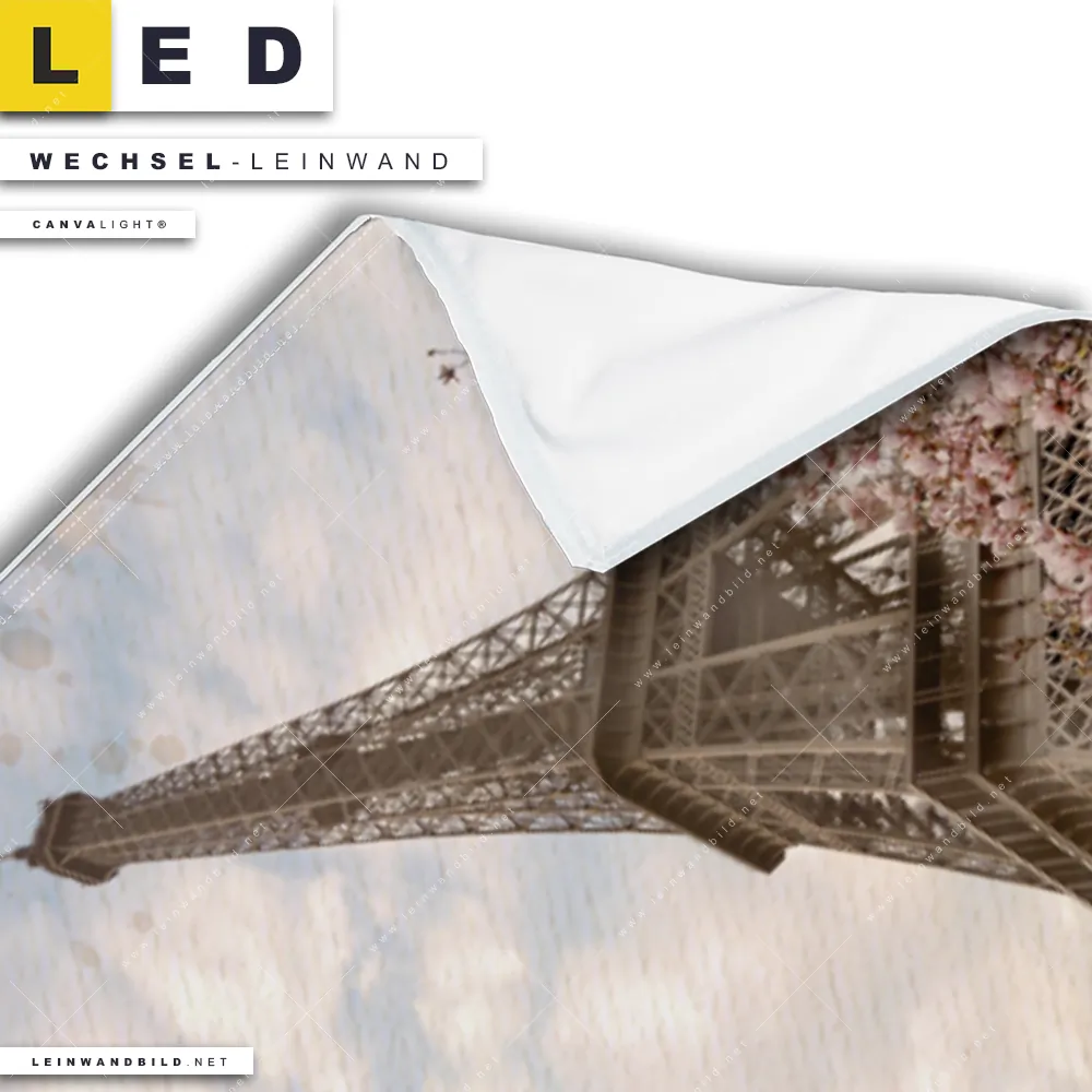 Dann sollte die Wechsel-Leinwand Canvalight® TEX | Eifelturm & Rosen | Panorama den Weg zu Dir finden. Die Austausch-Leinwand Eiffelturm mit Post und Blumen - passend für unsere stufenlos dimmbaren, steckerfertigen Leinwandbilder im LED Leuchtrahmen mit Fernbedienung und optionaler Farbtemperatursteuerung - fügt sich als Eye-Catcher harmonisch in jedes Wohnzimmer - Schlafzimmer, Küche - Esszimmer, Flur - Eingangsbereich, Büro - Kanzlei Raumkonzept ein.