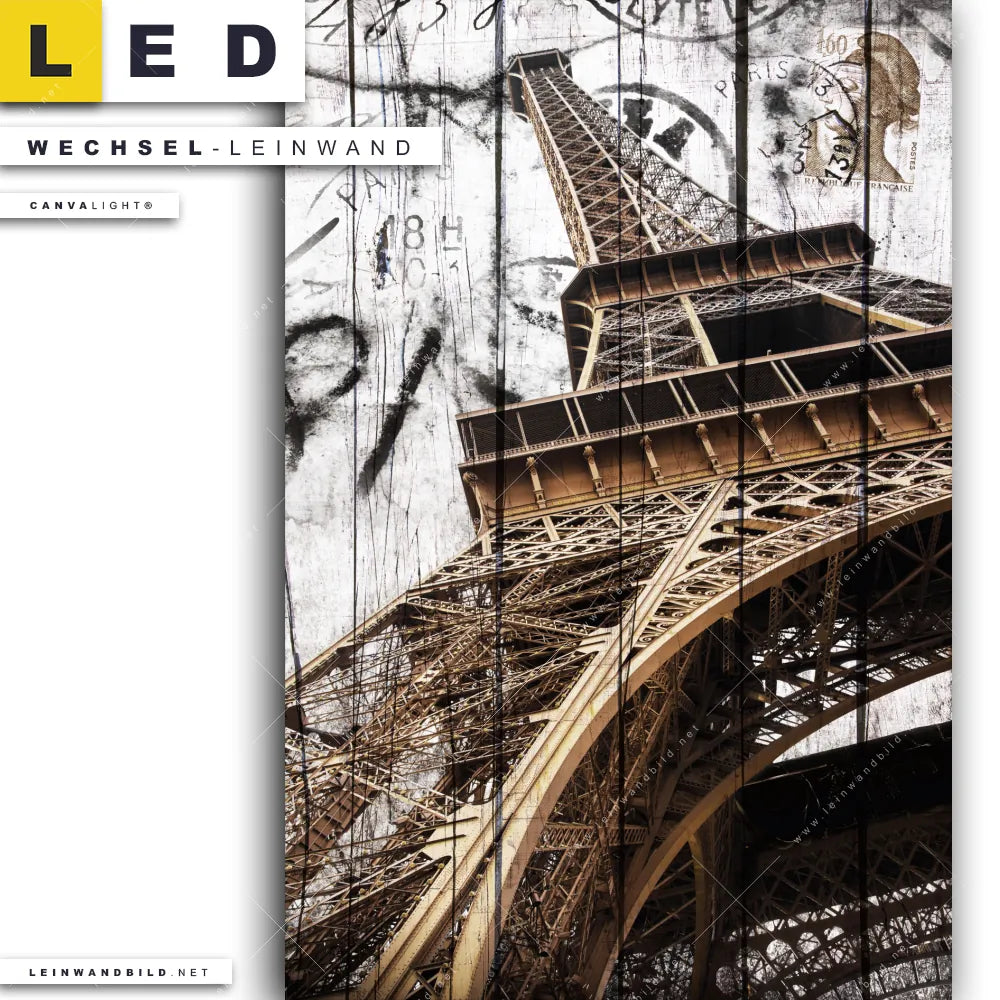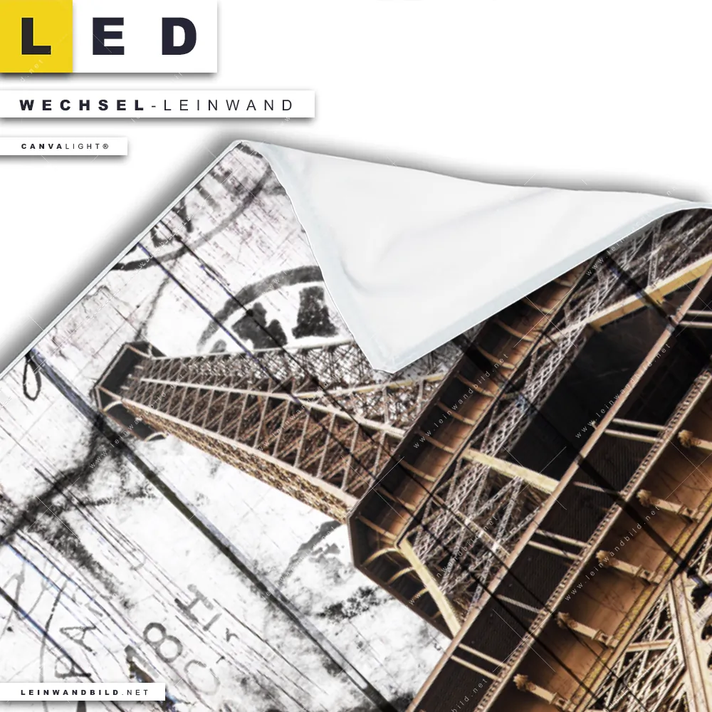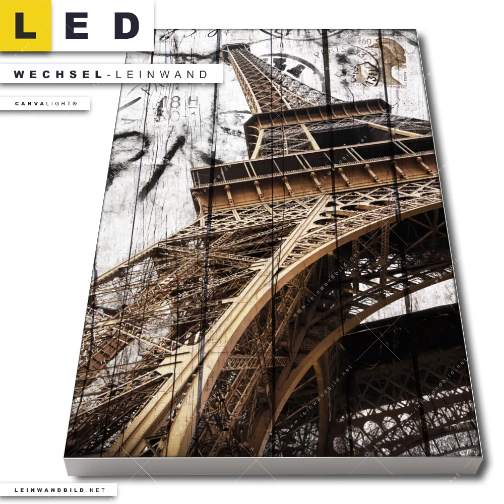 LED Wechsel-Leinwand Canvalight® TEX | Eifelturm Shabby Stil | Hochformat