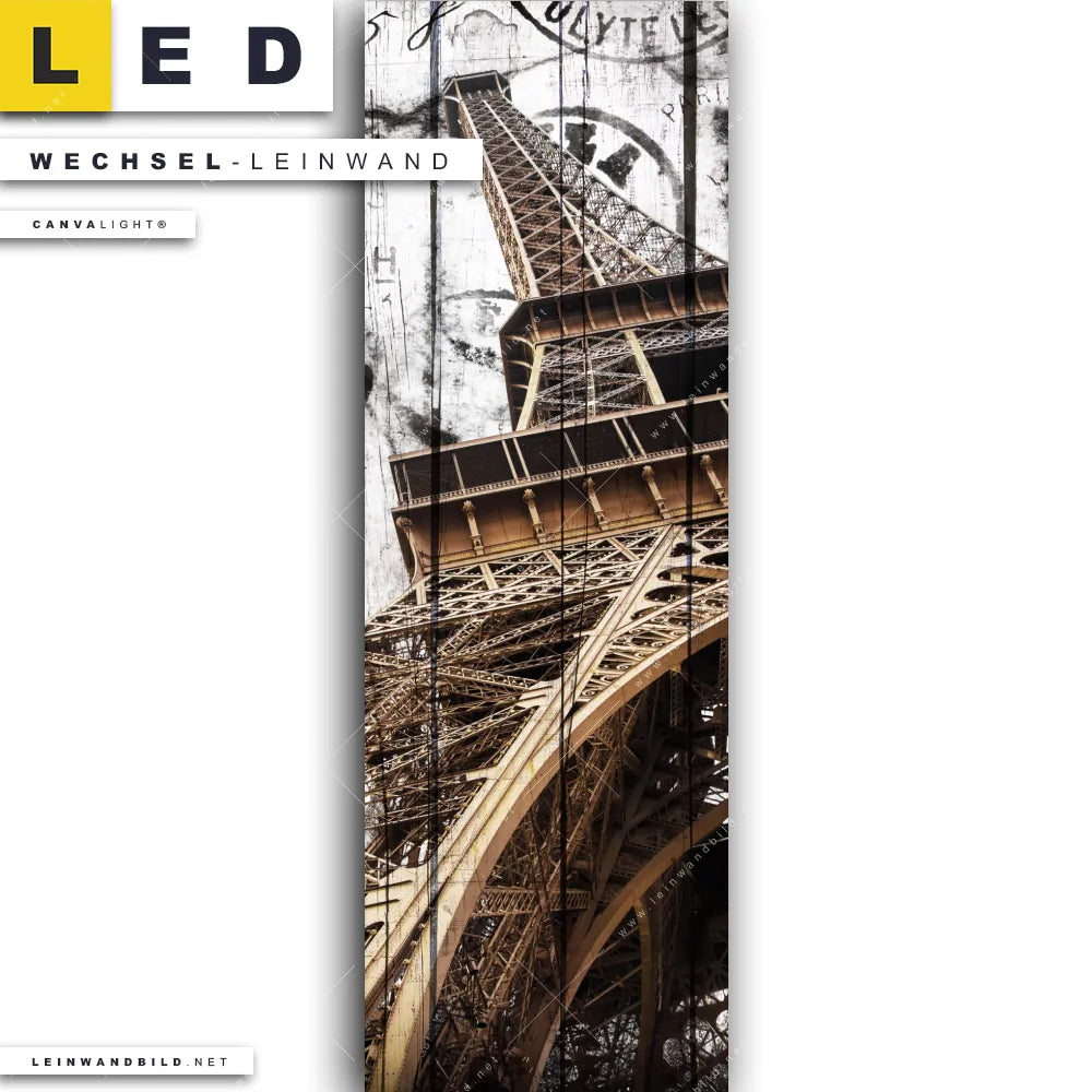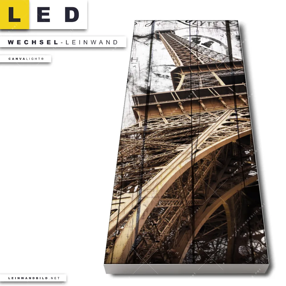 Du bist auf der Suche nach einer Architektur - Gebäude Wechsel-Leinwand für Dein LED-Leinwandbild im Schmalen Format? Begriffe wie Mixed Media, Sehenswürdigkeiten, Frankreich, Paris, Eifelturm, Holz haben Dich auf der Suche nach Deiner Ersatz-Leinwand für dein LED Wandbild im Panorama-Hochformat mit wechselbarer Leinwand inspiriert? Farben wie Braun, Beige dürfen auf Deinem neuen Wechselmotiv für Dein XXL Leinwand-LED-Bild nicht fehlen und Leinwände im Mixed Media Stil für Leuchtbilder passen perfekt zu Deinem Einrichtungsstil?