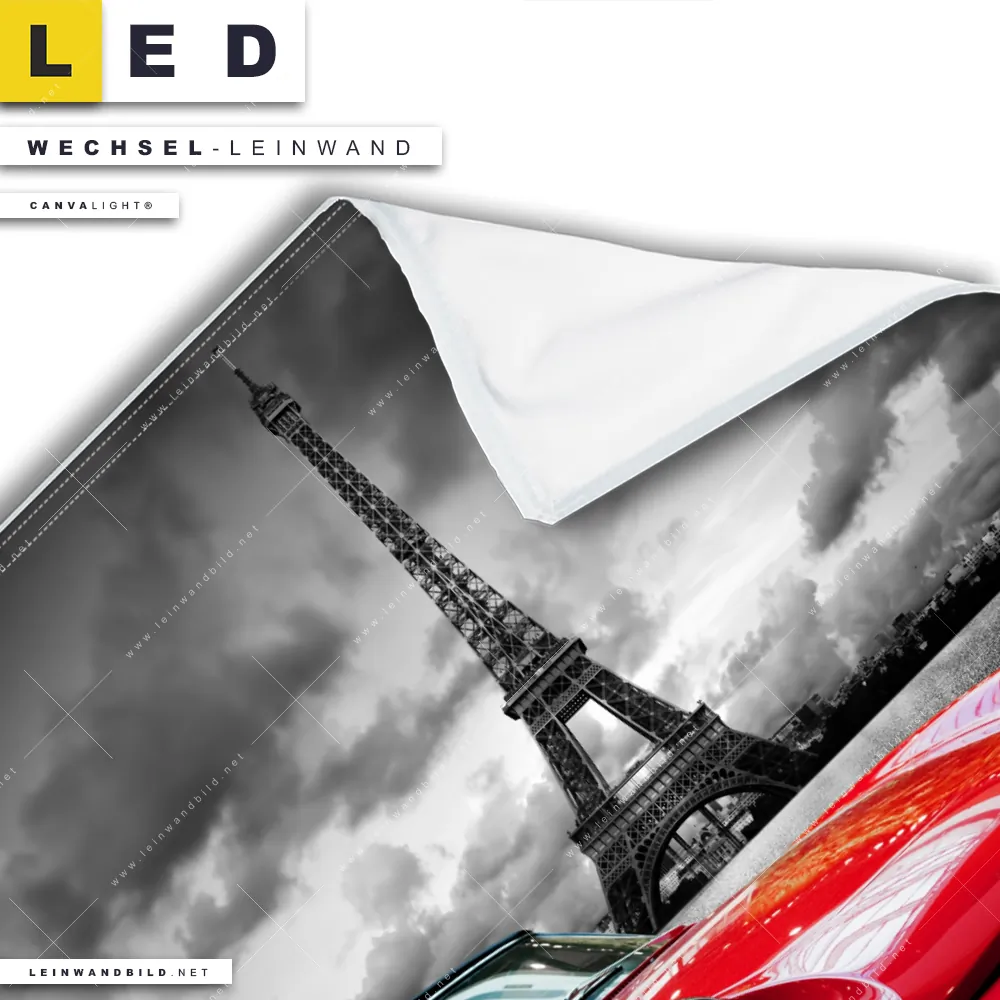 Du konfigurierst Deine individuelle LED Wechsel-Leinwand Canvalight® TEX | Eiffelturm & Rotes Auto | Quadrat und wir produzieren sie NEU für Dich. Unsere Städte - Skylines, Fahrzeuge Austausch-Fotoleinwände für Canvalight® LED Bilder sind KEINE Lagerware. Du bist Dir unsicher, welches Motiv oder Format das richtige für dein individuelles LED Wechselmotiv auf Leinwand ist, dann helfen wir dir gerne weiter und beraten dich!