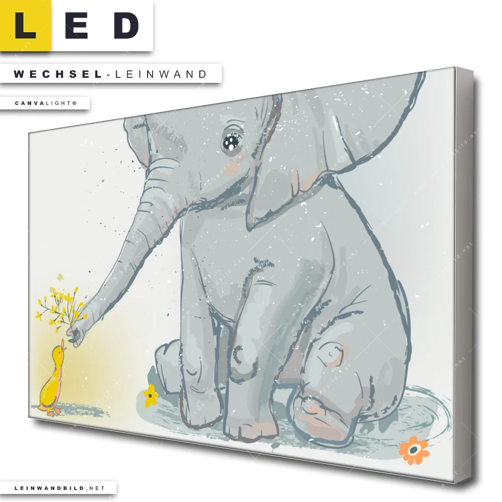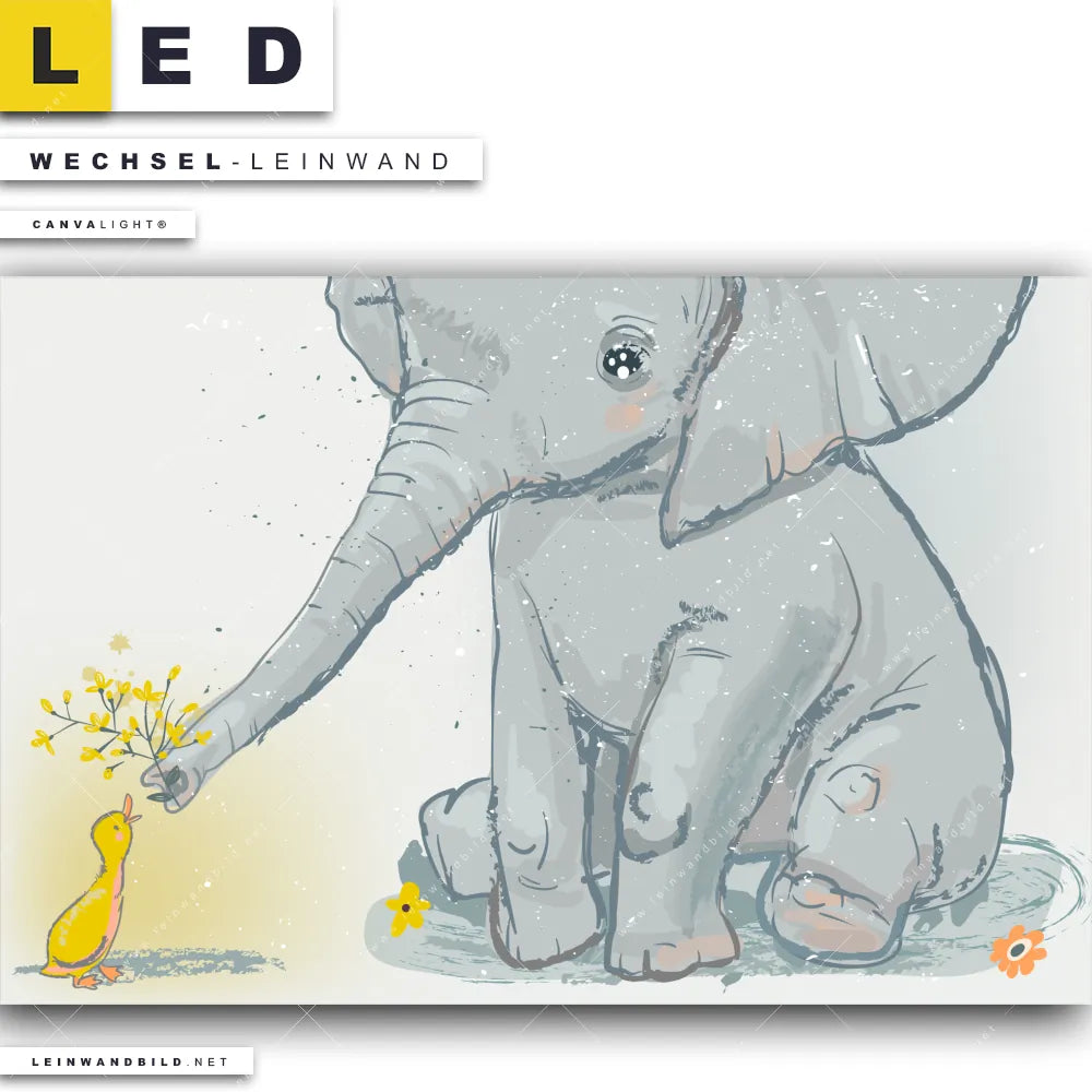 LED Wechsel-Leinwand Canvalight® TEX | Elefant & Entlein | Querformat
