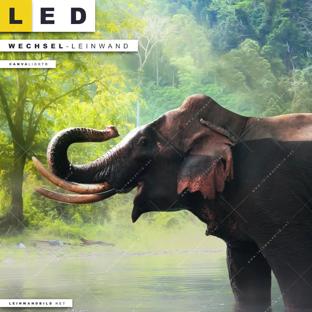 Du bist auf der Suche nach einer Tierwelt Wechsel-Leinwand für Dein LED-Leinwandbild im Hochformat? Begriffe wie Elefant, wild, Safari, Dschungel, Wasser, Sonnenstrahlen, Afrika haben Dich auf der Suche nach Deiner Ersatz-Leinwand für dein LED Wandbild mit wechselbarer Leinwand inspiriert? Farben wie Grün, Braun dürfen auf Deinem neuen Wechselmotiv für Dein XXL Leinwand-LED-Bild nicht fehlen und Leinwände im Natürlich - Realistisch Stil für Leuchtbilder passen perfekt zu Deinem Einrichtungsstil?