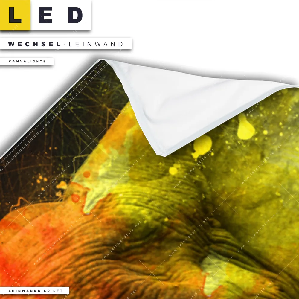 Du konfigurierst Deine individuelle LED Wechsel-Leinwand Canvalight® TEX | Elefant Pop Art No.2 | Schmal und wir produzieren sie NEU für Dich. Unsere Tierwelt Austausch-Fotoleinwände für Canvalight® LED Bilder sind KEINE Lagerware. Du bist Dir unsicher, welches Motiv oder Format das richtige für dein individuelles LED Wechselmotiv auf Leinwand ist, dann helfen wir dir gerne weiter und beraten dich!