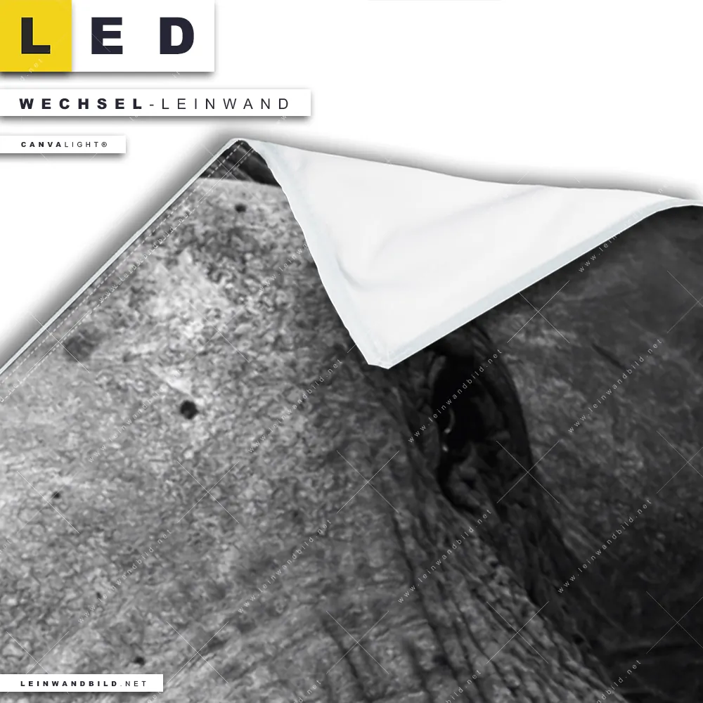 Du konfigurierst Deine individuelle LED Wechsel-Leinwand Canvalight® TEX | Elefant Schwarzweiß | Panorama und wir produzieren sie NEU für Dich. Unsere Tierwelt Austausch-Fotoleinwände für Canvalight® LED Bilder sind KEINE Lagerware. Du bist Dir unsicher, welches Motiv oder Format das richtige für dein individuelles LED Wechselmotiv auf Leinwand ist, dann helfen wir dir gerne weiter und beraten dich!