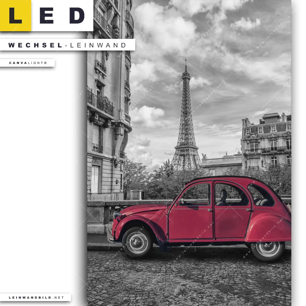 Auf der Suche nach Deinem neuen Wechselmotiv für LED Bilder mit austauschbarer Textil-Leinwand haben Dich Begriffe wie Sehenswürdigkeiten, Frankreich, Paris, Eifelturm, Auto, Ente, Schwarzweiss, Eiffelturm, Oldtimer inspiriert? Dann sollte die Wechsel-Leinwand Oldtimer mit Eiffelturm im Hintergrund für Canvalight® TEX LED Leuchtbilder den Weg zu Dir finden.