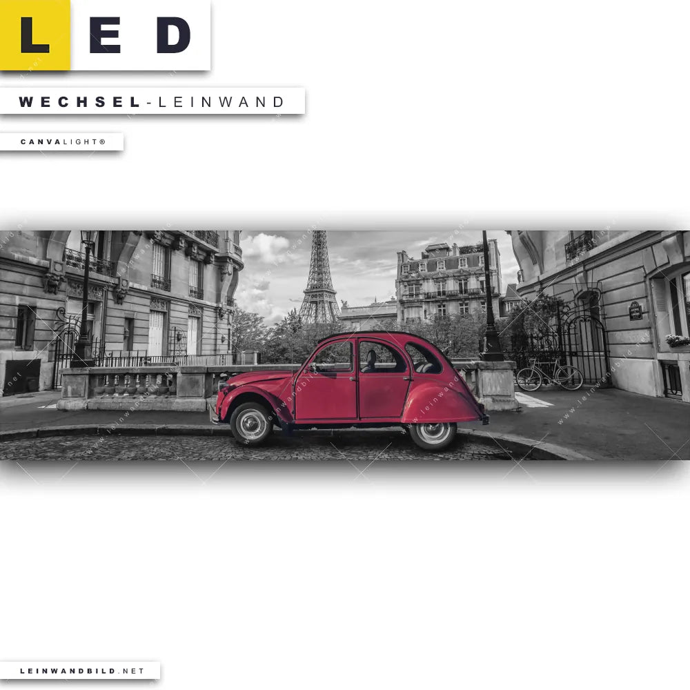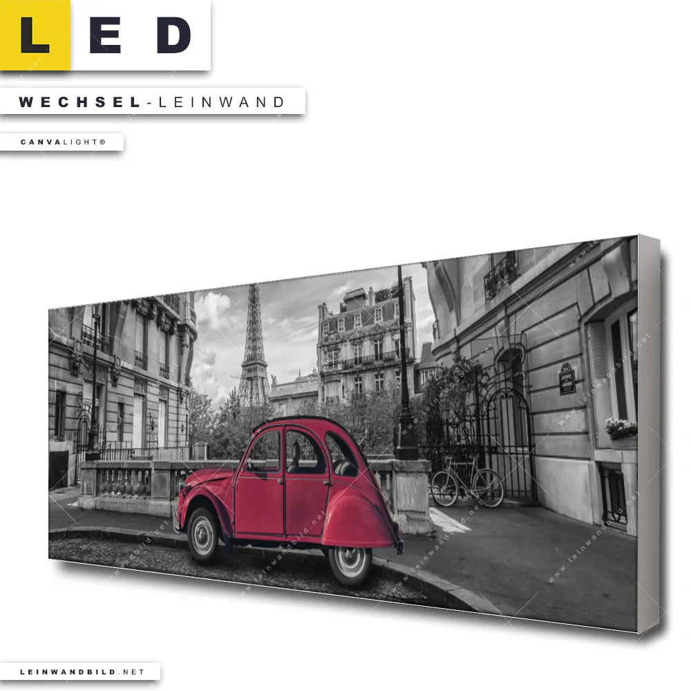Du bist auf der Suche nach einer Städte - Skylines, Fahrzeuge Wechsel-Leinwand für Dein LED-Leinwandbild im Panorama-Format? Begriffe wie Sehenswürdigkeiten, Frankreich, Paris, Eifelturm, Auto, Ente, Schwarzweiss, Eiffelturm, Oldtimer haben Dich auf der Suche nach Deiner Ersatz-Leinwand für dein extra breites LED Wandbild mit wechselbarer Leinwand inspiriert? Farben wie Weiss, Schwarz, Rot dürfen auf Deinem neuen Wechselmotiv für Dein XXL Leinwand-LED-Bild nicht fehlen und Leinwände im Modern Art, Minimalistisch, Schwarz - Weiss Stil für Leuchtbilder passen perfekt zu Deinem Einrichtungsstil?