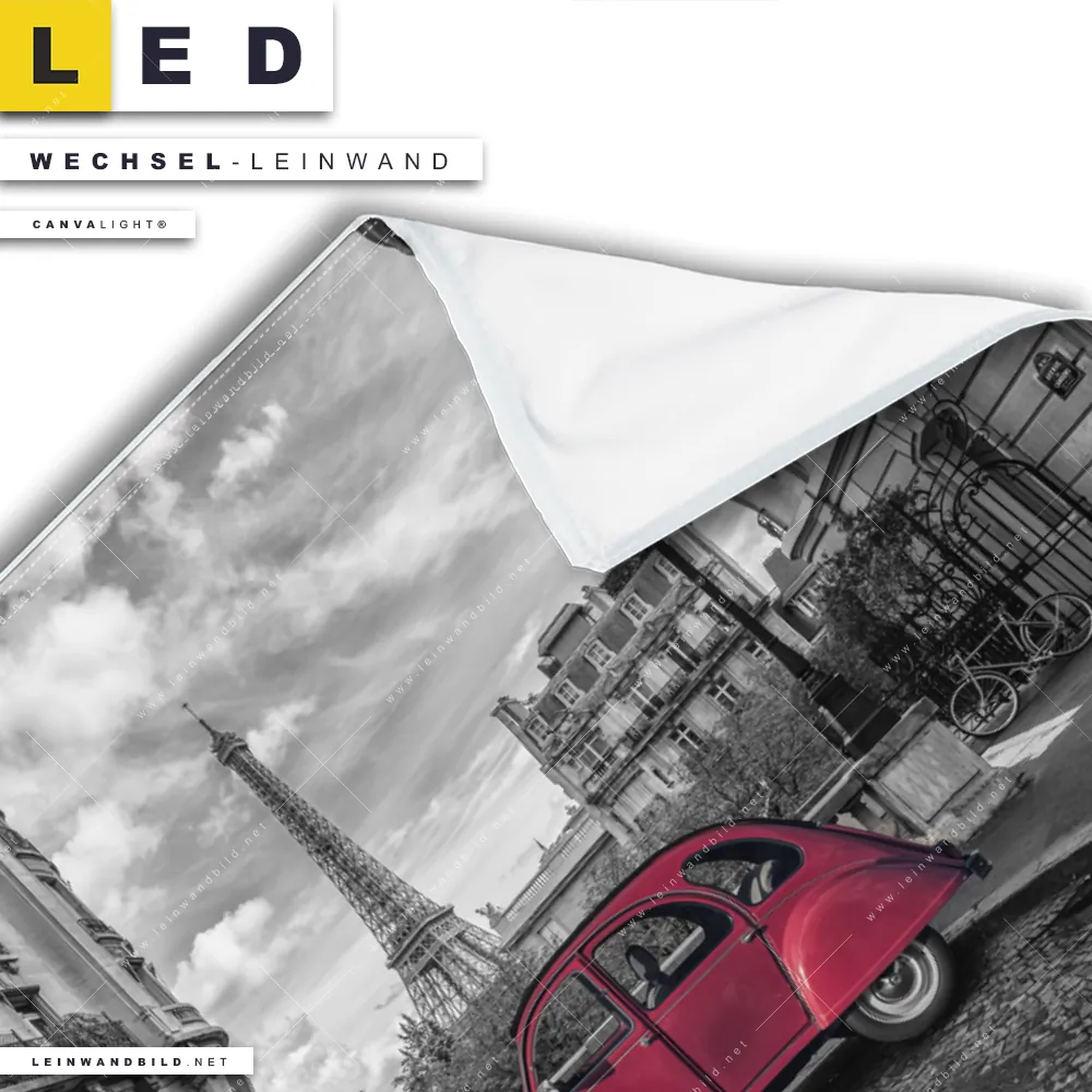 Du bist auf der Suche nach einer Städte - Skylines, Fahrzeuge Wechsel-Leinwand für Dein LED-Leinwandbild im Querformat? Begriffe wie Sehenswürdigkeiten, Frankreich, Paris, Eifelturm, Auto, Ente, Schwarzweiss, Eiffelturm, Oldtimer haben Dich auf der Suche nach Deiner Ersatz-Leinwand für dein breites LED Wandbild mit wechselbarer Leinwand inspiriert? Farben wie Weiss, Schwarz, Rot dürfen auf Deinem neuen Wechselmotiv für Dein XXL Leinwand-LED-Bild nicht fehlen und Leinwände im Modern Art, Minimalistisch, Schwarz - Weiss Stil für Leuchtbilder passen perfekt zu Deinem Einrichtungsstil?
