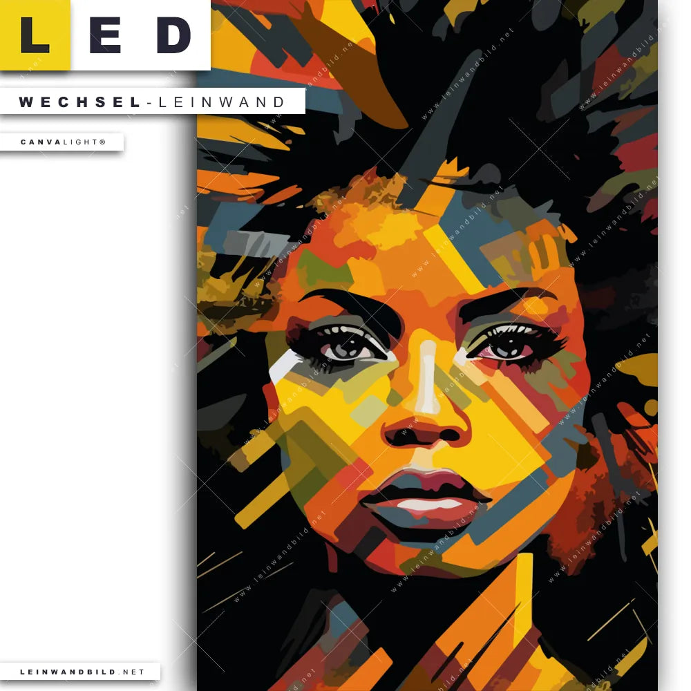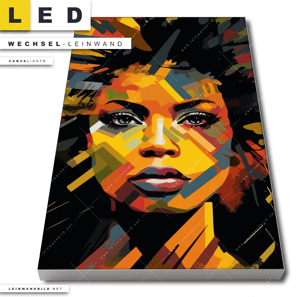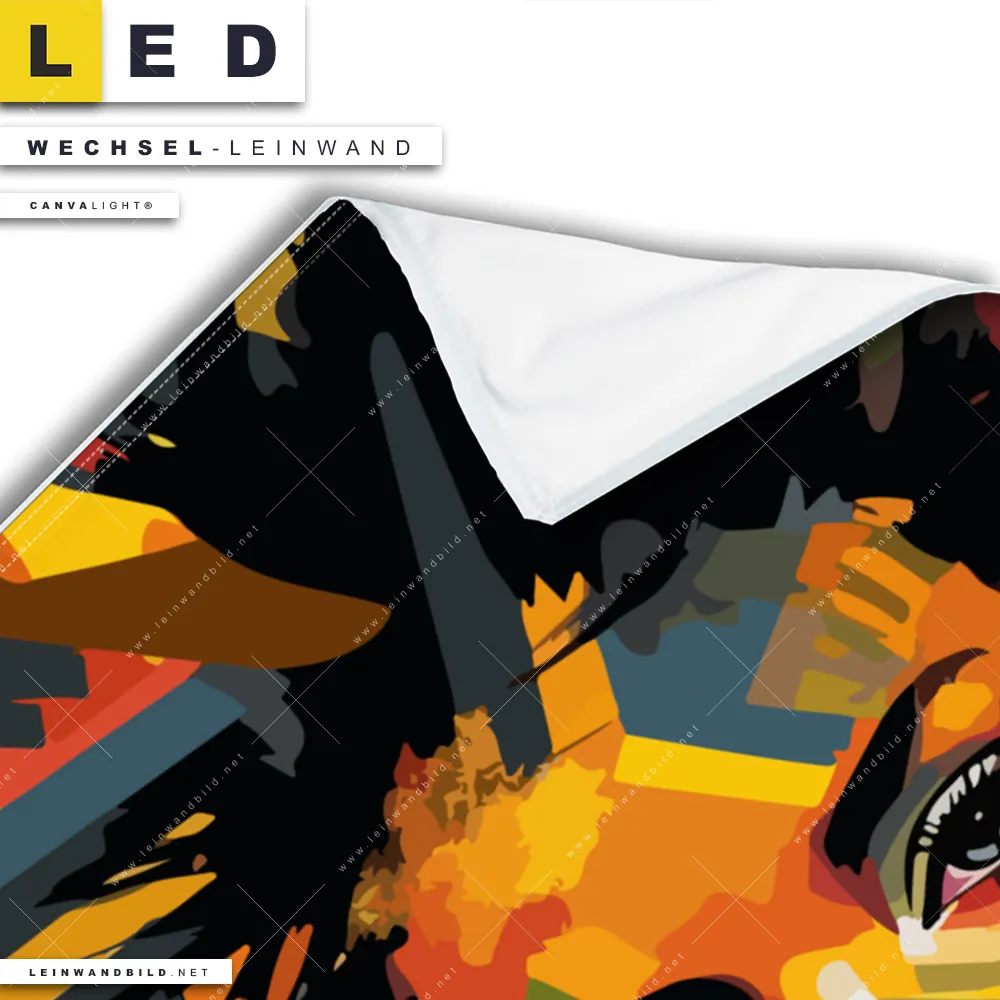 Dann sollte die Wechsel-Leinwand Canvalight® TEX | Erzörnte Frau | Hochformat den Weg zu Dir finden. Die Austausch-Leinwand buntes Seitenprofil Frau - passend für unsere stufenlos dimmbaren, steckerfertigen Leinwandbilder im Leuchtrahmen mit Fernbedienung und optionaler Farbtemperatursteuerung - fügt sich als Eye-Catcher harmonisch in jedes Wohnzimmer - Schlafzimmer, Bar - Gastronomie, Friseur - Beauty Raumkonzept ein.