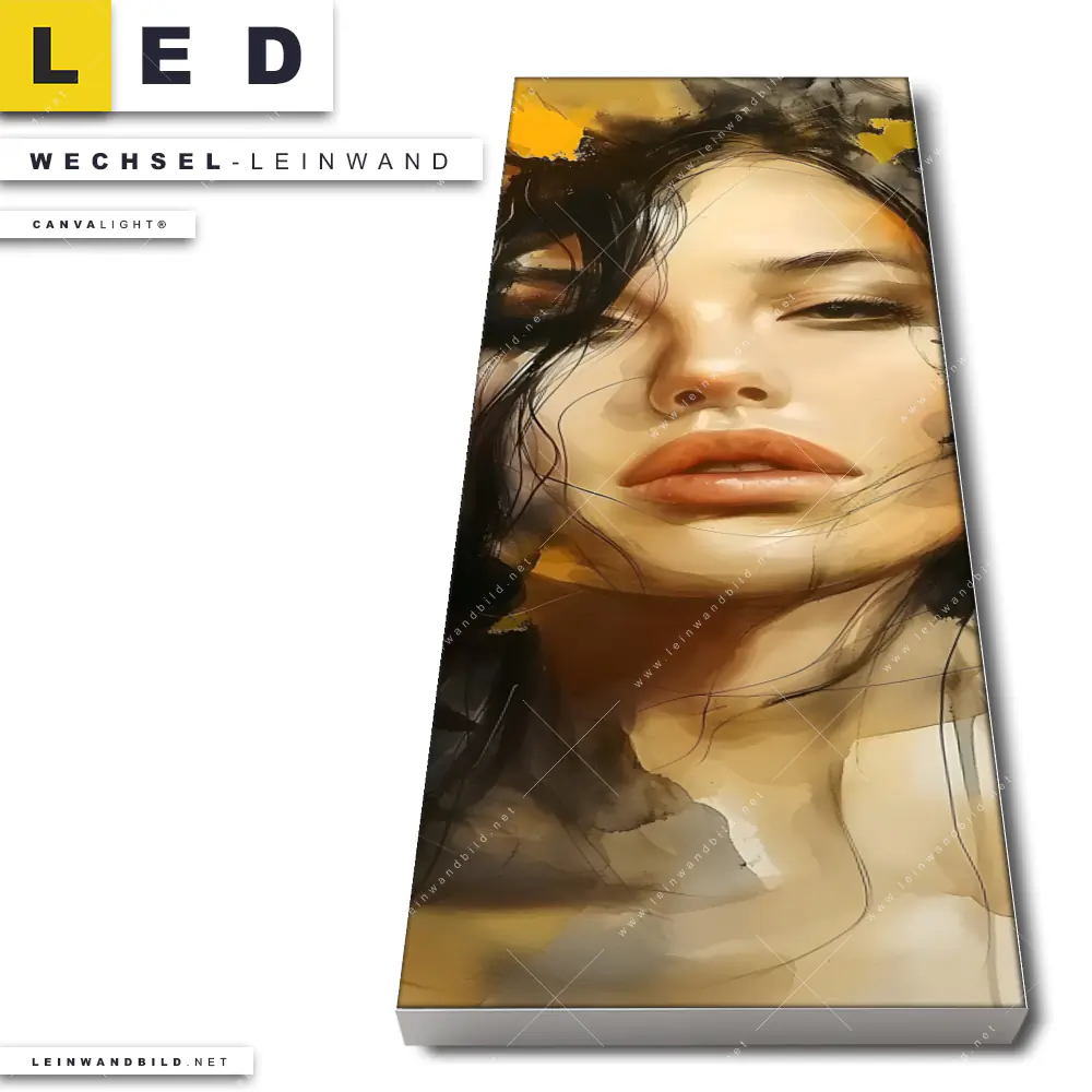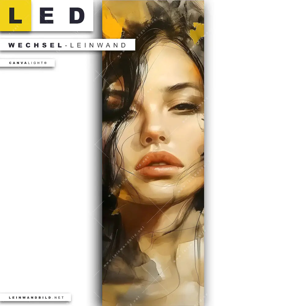 LED Wechsel-Leinwand Canvalight® TEX | Estelle - Dynamische Porträtkunst | Schmal