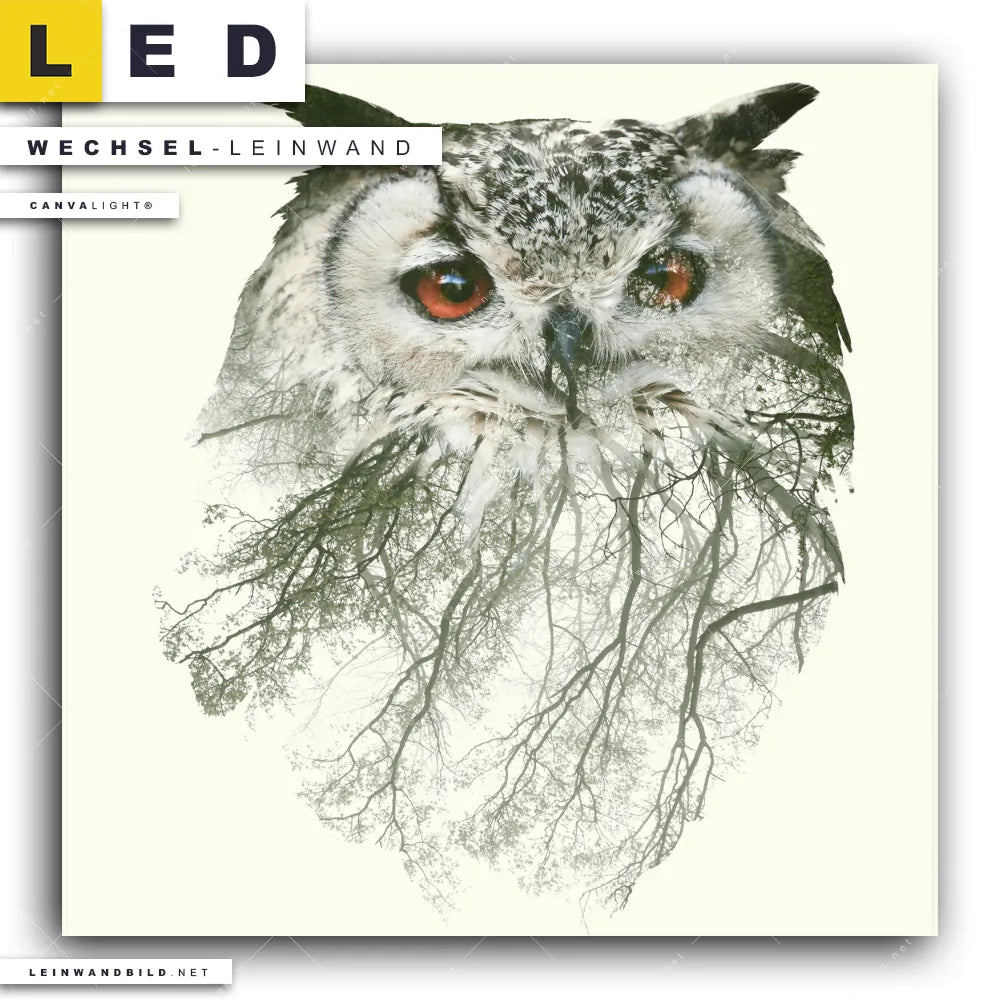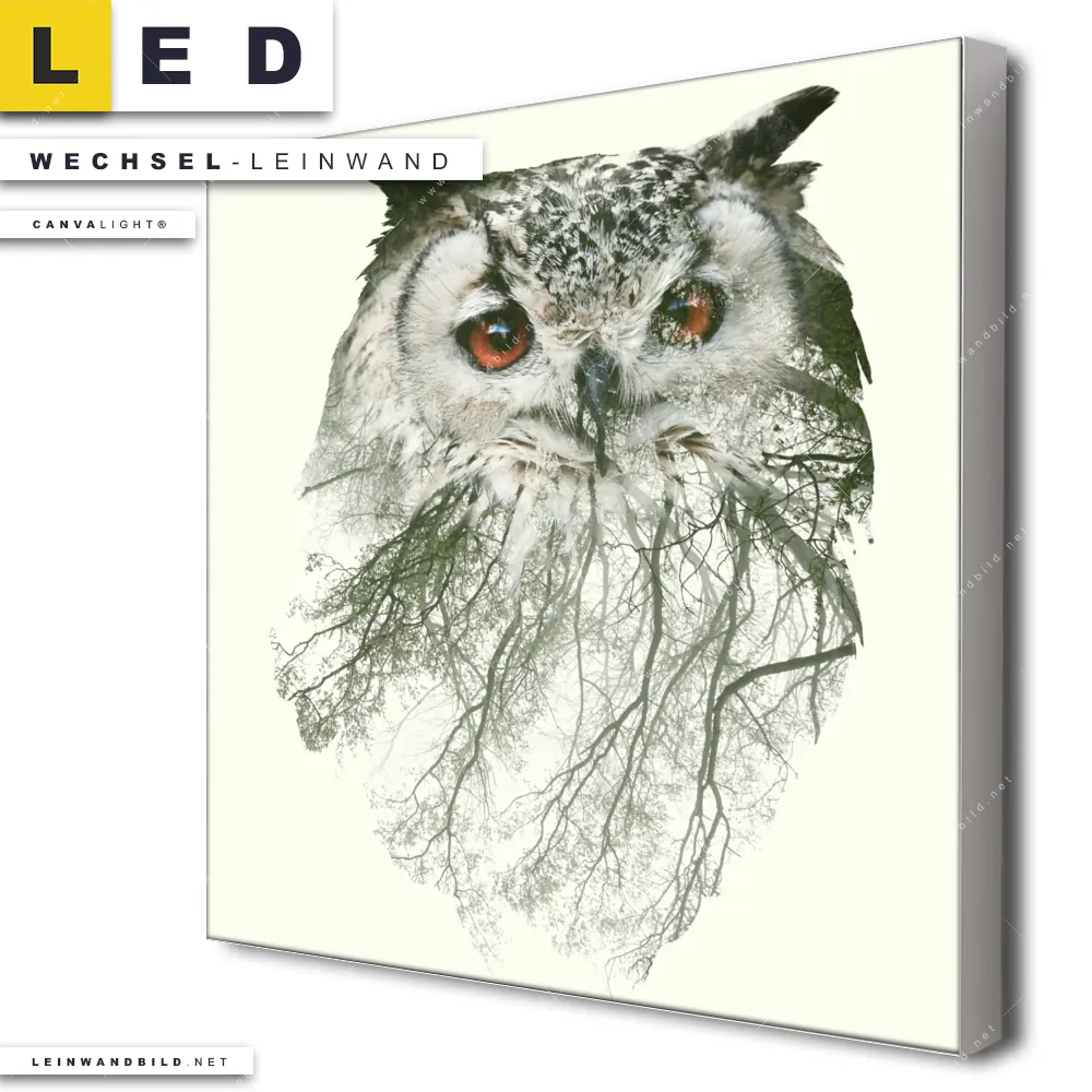 LED Wechsel-Leinwand Canvalight® TEX | Eule & Wald No.1 | Quadrat