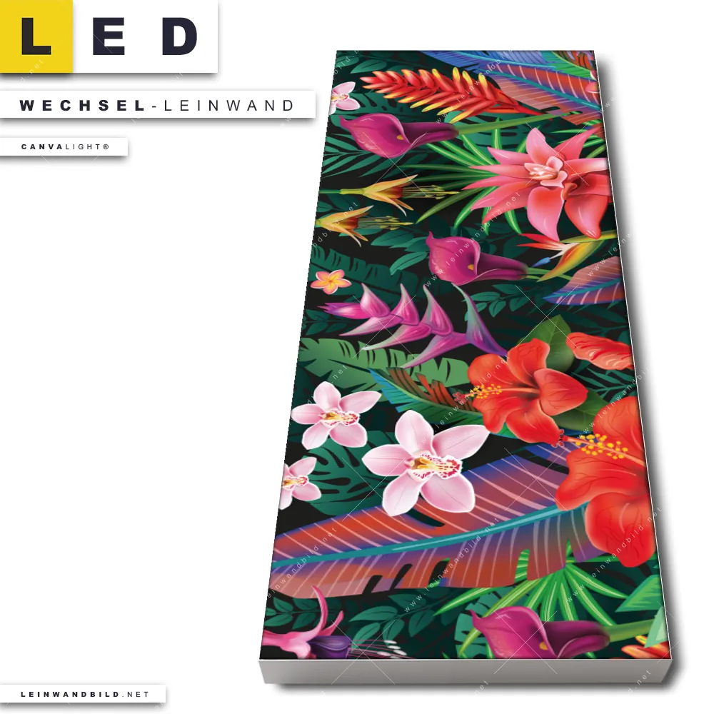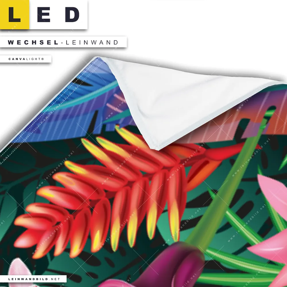 Du konfigurierst Deine individuelle LED Wechsel-Leinwand Canvalight® TEX | Exotische Tropenpflanzen | Schmal und wir produzieren sie NEU für Dich. Unsere Blumen - Botanik Austausch-Fotoleinwände für Canvalight® LED Bilder sind KEINE Lagerware. Du bist Dir unsicher, welches Motiv oder Format das richtige für dein individuelles LED Wechselmotiv auf Leinwand ist, dann helfen wir dir gerne weiter und beraten dich!