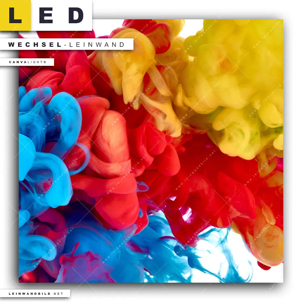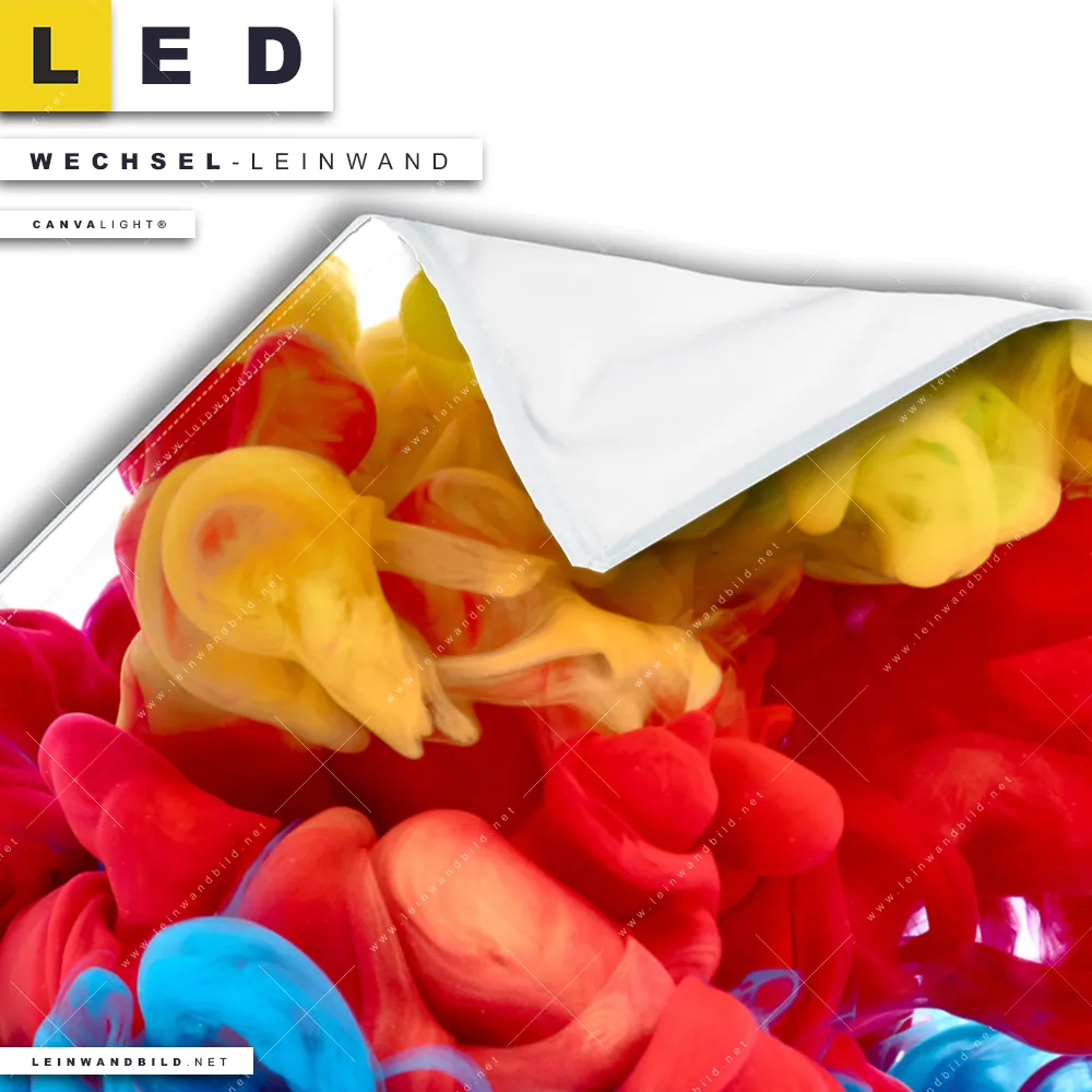 Du konfigurierst Deine individuelle LED Wechsel-Leinwand Canvalight® TEX | Farbe im Wasser - bunt | Quadrat und wir produzieren sie NEU für Dich. Unsere Muster - Texturen Austausch-Fotoleinwände für Canvalight® LED Bilder sind KEINE Lagerware. Du bist Dir unsicher, welches Motiv oder Format das richtige für dein individuelles LED Wechselmotiv auf Leinwand ist, dann helfen wir dir gerne weiter und beraten dich!