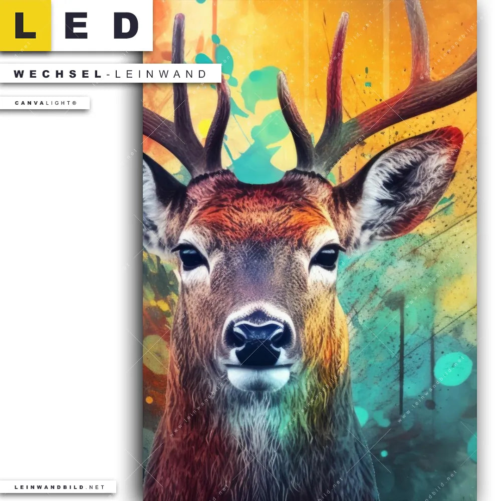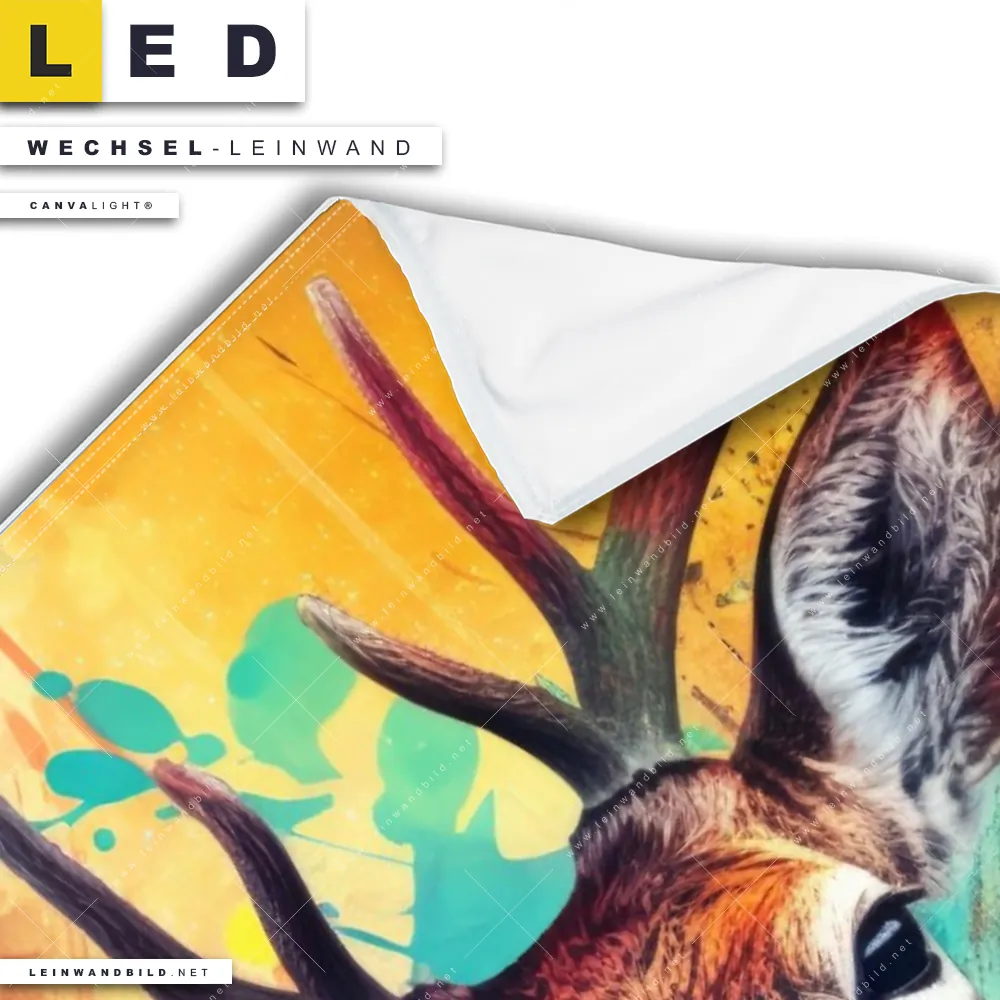 LED Wechsel-Leinwand Canvalight® TEX | Farbenfrohes Hirschporträt | Hochformat