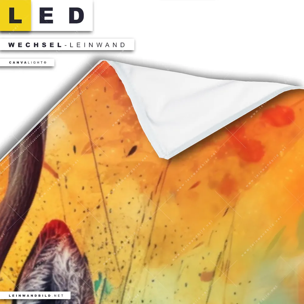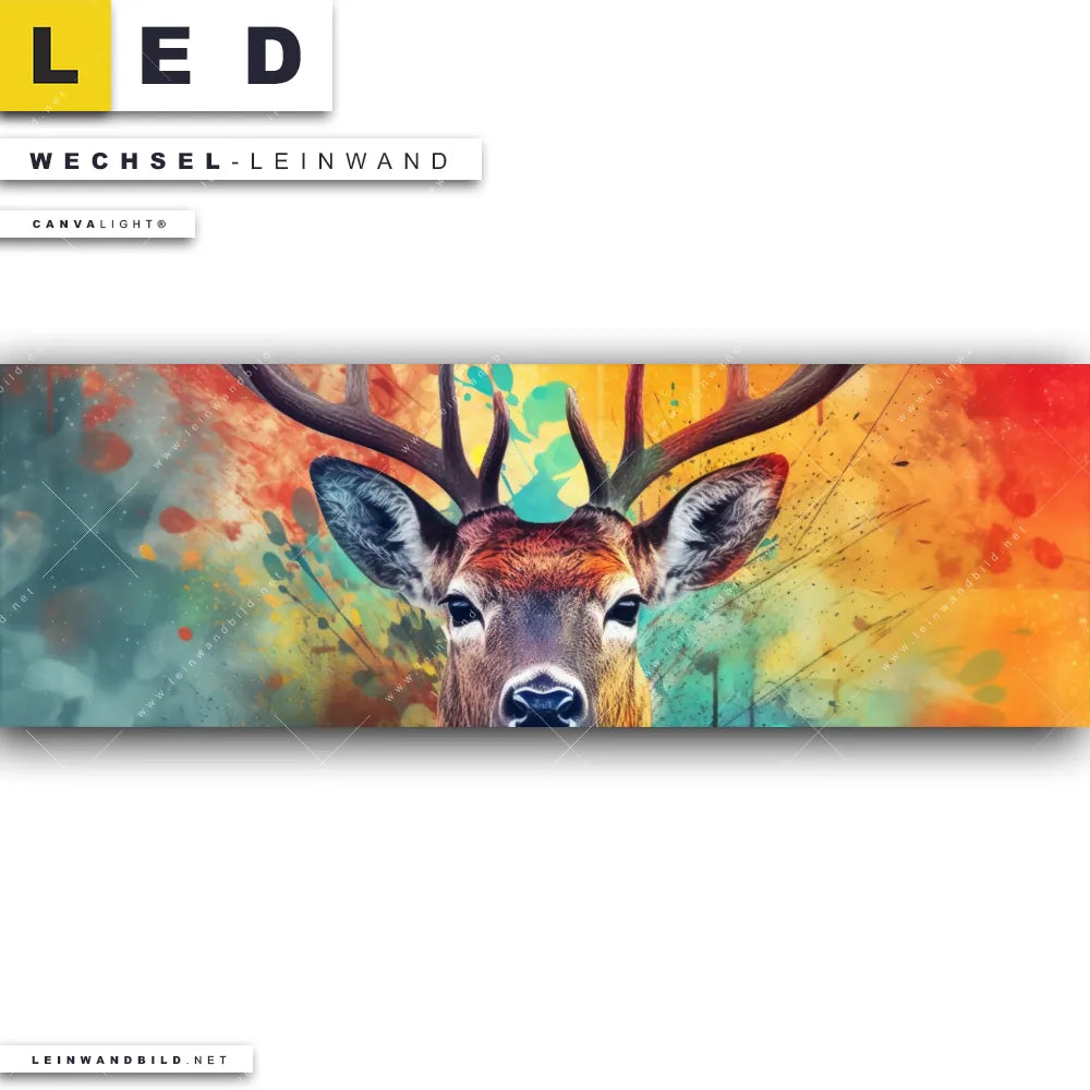 LED Wechsel-Leinwand Canvalight® TEX | Farbenfrohes Hirschporträt | Panorama