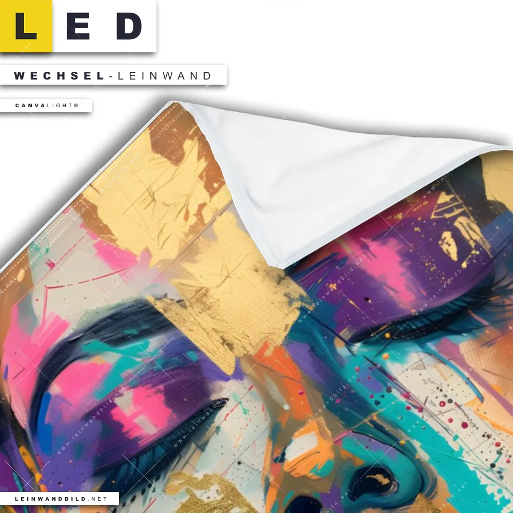 LED Wechsel-Leinwand Canvalight® TEX | Farbexplosion - Porträt Florence | Hochformat