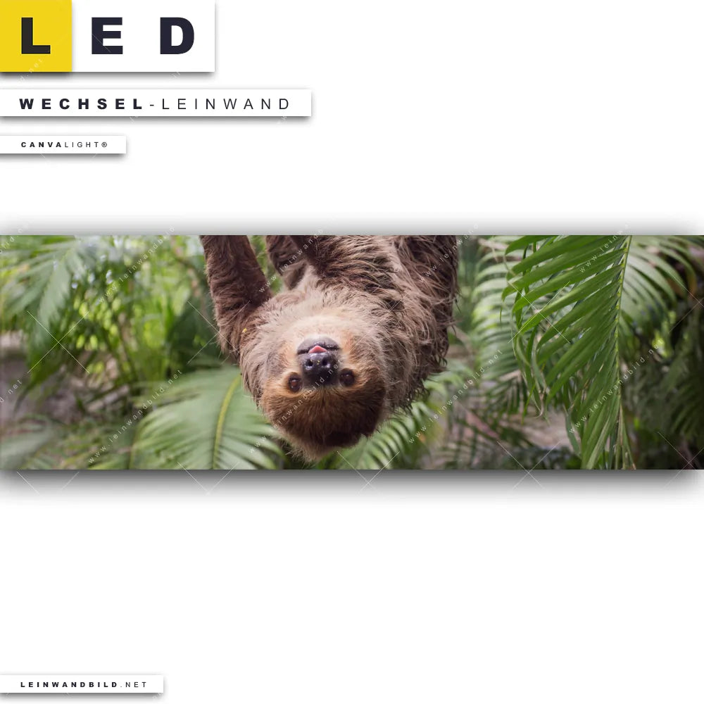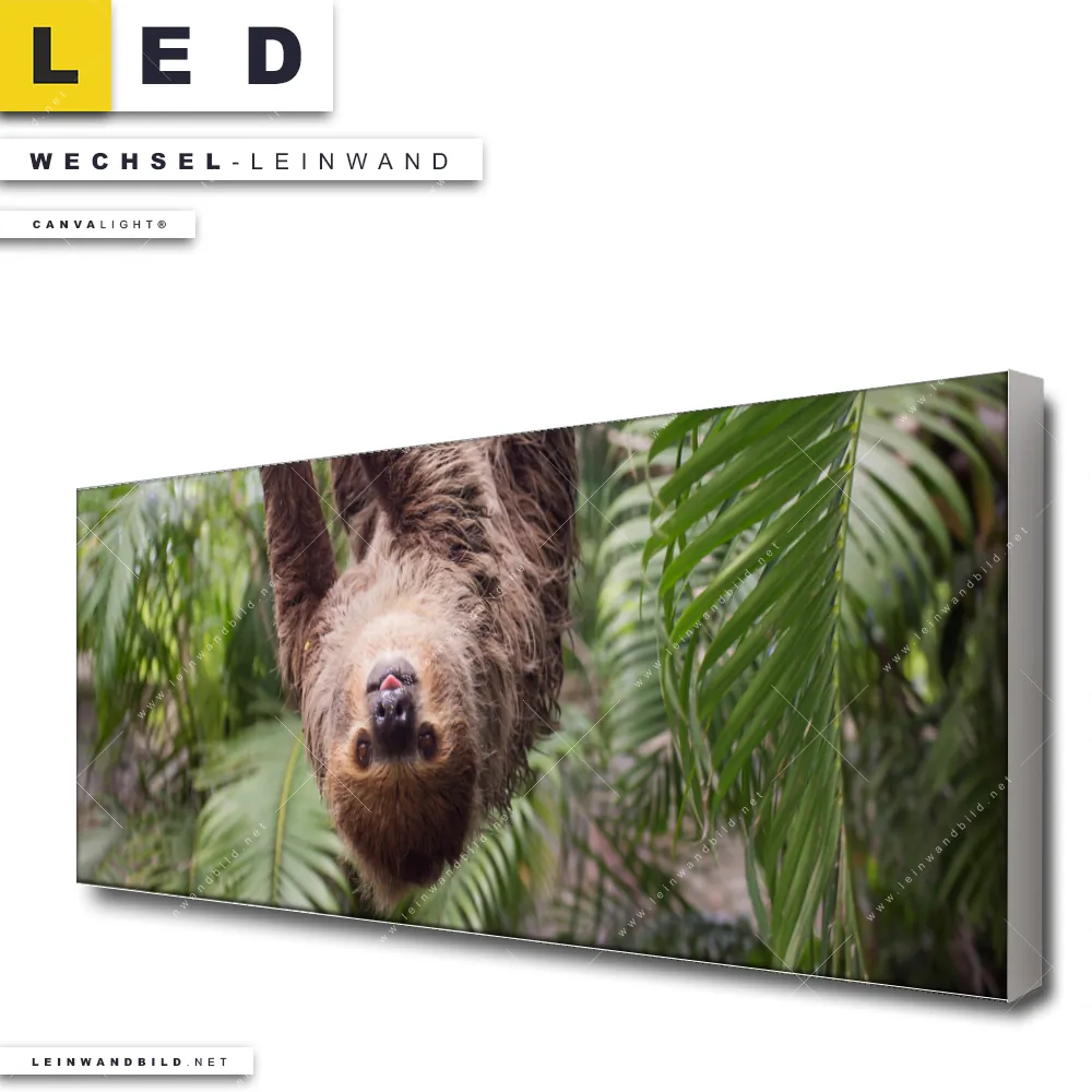 LED Wechsel-Leinwand Canvalight® TEX | Faultier streckt Zunge raus | Panorama