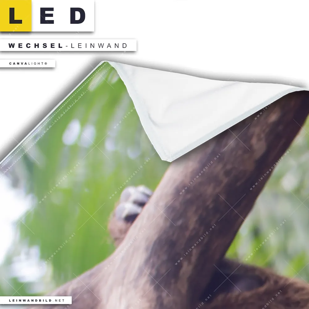 Du konfigurierst Deine individuelle LED Wechsel-Leinwand Canvalight® TEX | Faultier streckt Zunge raus | Schmal und wir produzieren sie NEU für Dich. Unsere Tierwelt, Wald - Bäume Austausch-Fotoleinwände für Canvalight® LED Bilder sind KEINE Lagerware. Du bist Dir unsicher, welches Motiv oder Format das richtige für dein individuelles LED Wechselmotiv auf Leinwand ist, dann helfen wir dir gerne weiter und beraten dich!
