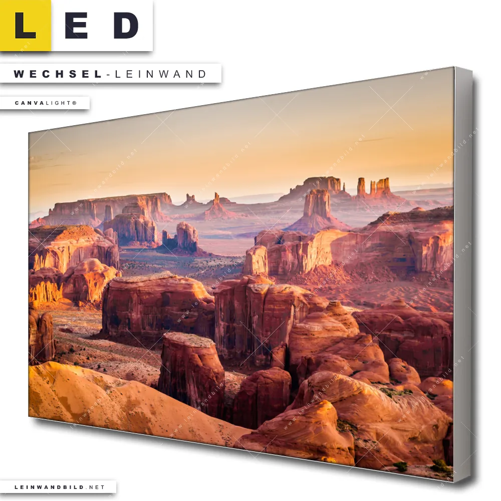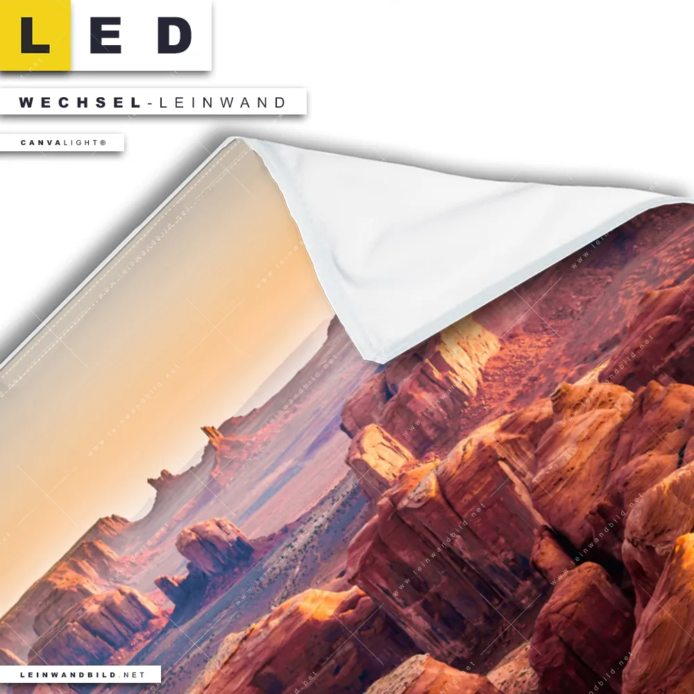 Du bist auf der Suche nach einer Landschaften Wechsel-Leinwand für Dein LED-Leinwandbild im Querformat? Begriffe wie Sehenswürdigkeit, USA, Landschaft, Sonnenuntergang, Steine haben Dich auf der Suche nach Deiner Ersatz-Leinwand für dein breites LED Wandbild mit wechselbarer Leinwand inspiriert? Farben wie Orange, Lila, Rot, Rosa, Blau, Grün dürfen auf Deinem neuen Wechselmotiv für Dein XXL Leinwand-LED-Bild nicht fehlen und Leinwände im Natürlich - Realistisch Stil für Leuchtbilder passen perfekt zu Deinem Einrichtungsstil?