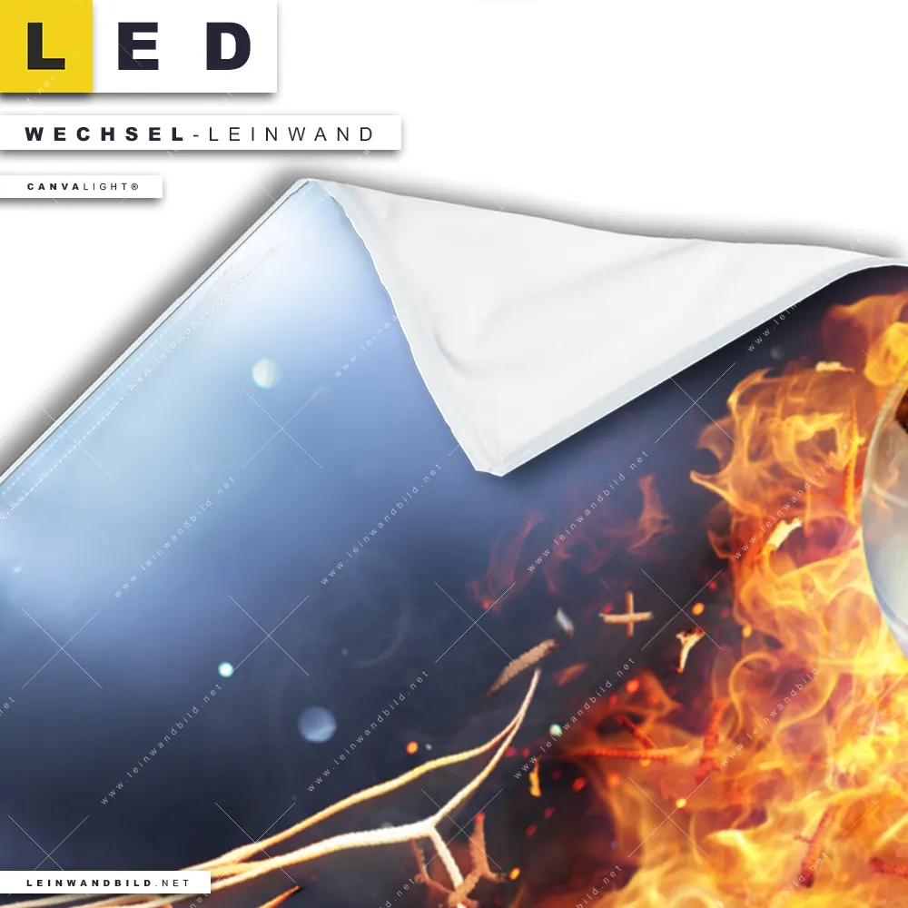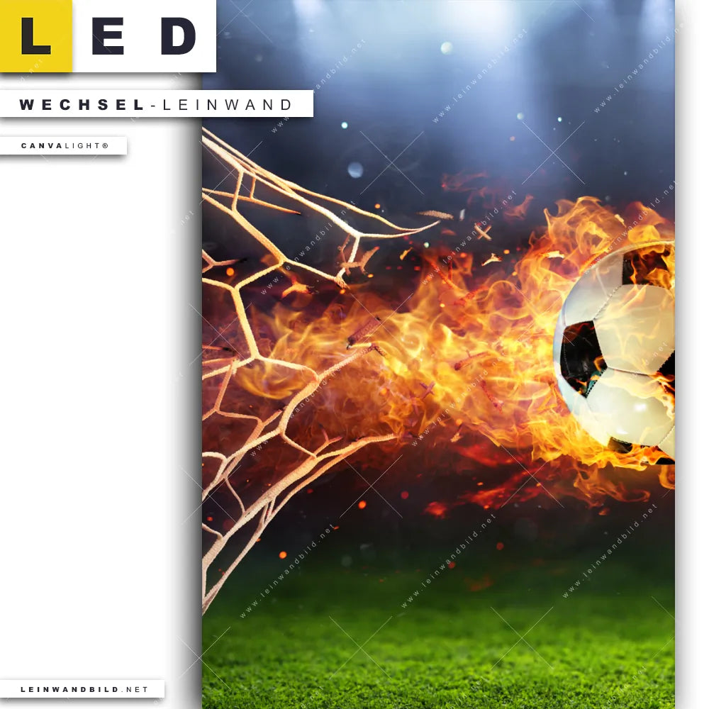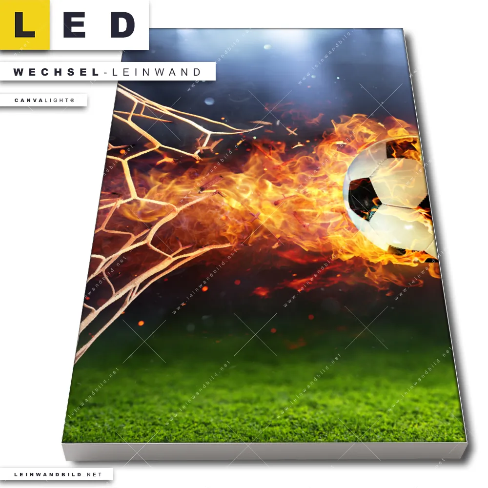 Du bist auf der Suche nach einer Sport - Freizeit Wechsel-Leinwand für Dein LED-Leinwandbild im Hochformat? Begriffe wie Sport, Fussball, Tor, Spielfeld, Ball, Torschuss, Netz, Meiserschaft, Feuer, Flammen, brennend haben Dich auf der Suche nach Deiner Ersatz-Leinwand für dein LED Wandbild mit wechselbarer Leinwand inspiriert? Farben wie Grün, Blau, Orange, Weiss, Schwarz dürfen auf Deinem neuen Wechselmotiv für Dein XXL Leinwand-LED-Bild nicht fehlen und Leinwände im Modern Art, Natürlich - Realistisch Stil für Leuchtbilder passen perfekt zu Deinem Einrichtungsstil?