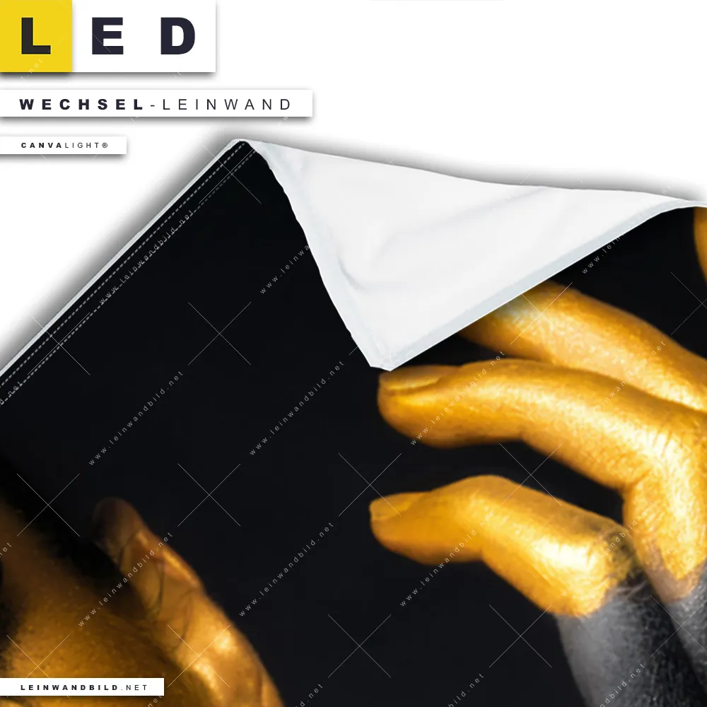 Bitte beachte, dass die Farben, der auf dem Monitor abgebildeten Sinnlichkeit in schwarz-gold Darstellung, möglicherweise von den Originalfarben deiner Canvalight® TEX Wechsel-Leinwand abweichen können.