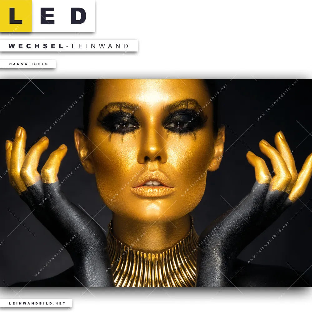 Du bist auf der Suche nach einer Porträts - Menschen Wechsel-Leinwand für Dein LED-Leinwandbild im Querformat? Begriffe wie Frau, Beauty, Gesicht, Körper, Lippen, Mund, Make-up haben Dich auf der Suche nach Deiner Ersatz-Leinwand für dein breites LED Wandbild mit wechselbarer Leinwand inspiriert? Farben wie Gold, Schwarz dürfen auf Deinem neuen Wechselmotiv für Dein XXL Leinwand-LED-Bild nicht fehlen und Leinwände im Modern Art Stil für Leuchtbilder passen perfekt zu Deinem Einrichtungsstil?