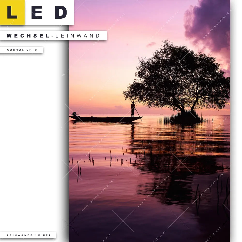 Du bist auf der Suche nach einer Landschaften Wechsel-Leinwand für Dein LED-Leinwandbild im Hochformat? Begriffe wie Berge, See, Boot, Boote, Wasserspiegelung, Wasser, Sonnenuntergang, Sonnenaufgang, Bäume, Natur haben Dich auf der Suche nach Deiner Ersatz-Leinwand für dein LED Wandbild mit wechselbarer Leinwand inspiriert? Farben wie Lila, Rosa, Schwarz dürfen auf Deinem neuen Wechselmotiv für Dein XXL Leinwand-LED-Bild nicht fehlen und Leinwände im Natürlich - Realistisch Stil für Leuchtbilder passen perfekt zu Deinem Einrichtungsstil?