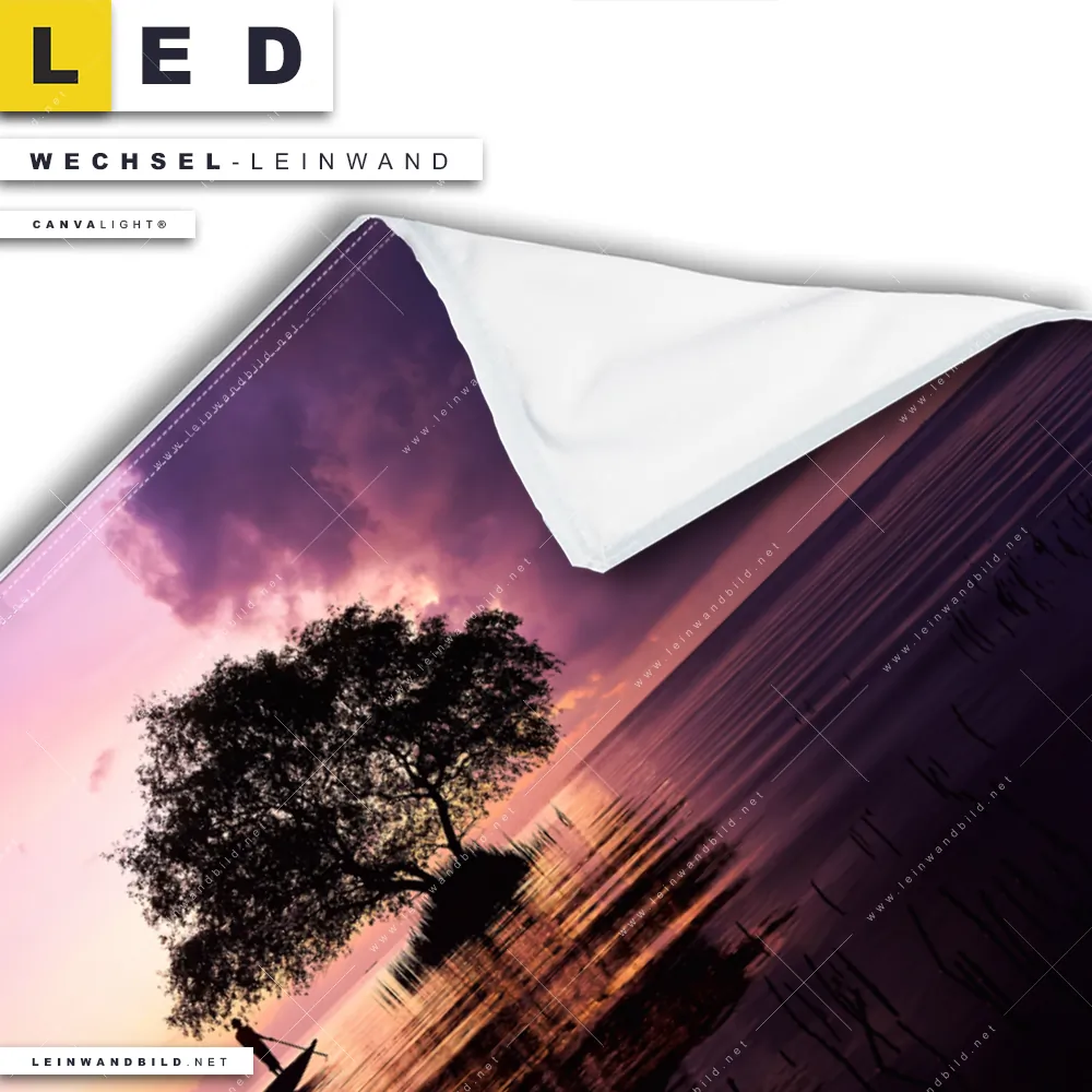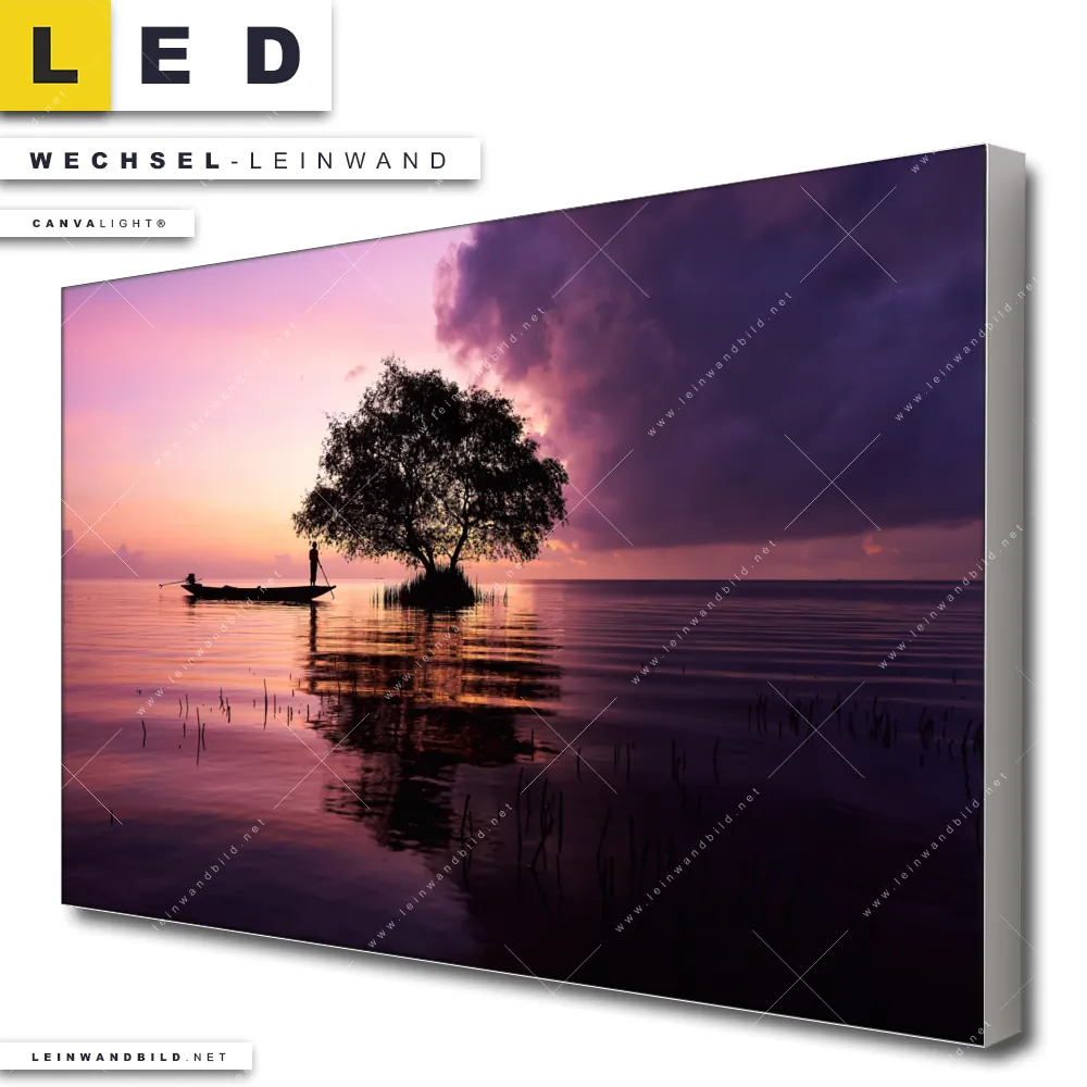 Du bist auf der Suche nach einer Landschaften Wechsel-Leinwand für Dein LED-Leinwandbild im Querformat? Begriffe wie Berge, See, Boot, Boote, Wasserspiegelung, Wasser, Sonnenuntergang, Sonnenaufgang, Bäume, Natur haben Dich auf der Suche nach Deiner Ersatz-Leinwand für dein breites LED Wandbild mit wechselbarer Leinwand inspiriert? Farben wie Lila, Rosa, Schwarz dürfen auf Deinem neuen Wechselmotiv für Dein XXL Leinwand-LED-Bild nicht fehlen und Leinwände im Natürlich - Realistisch Stil für Leuchtbilder passen perfekt zu Deinem Einrichtungsstil?
