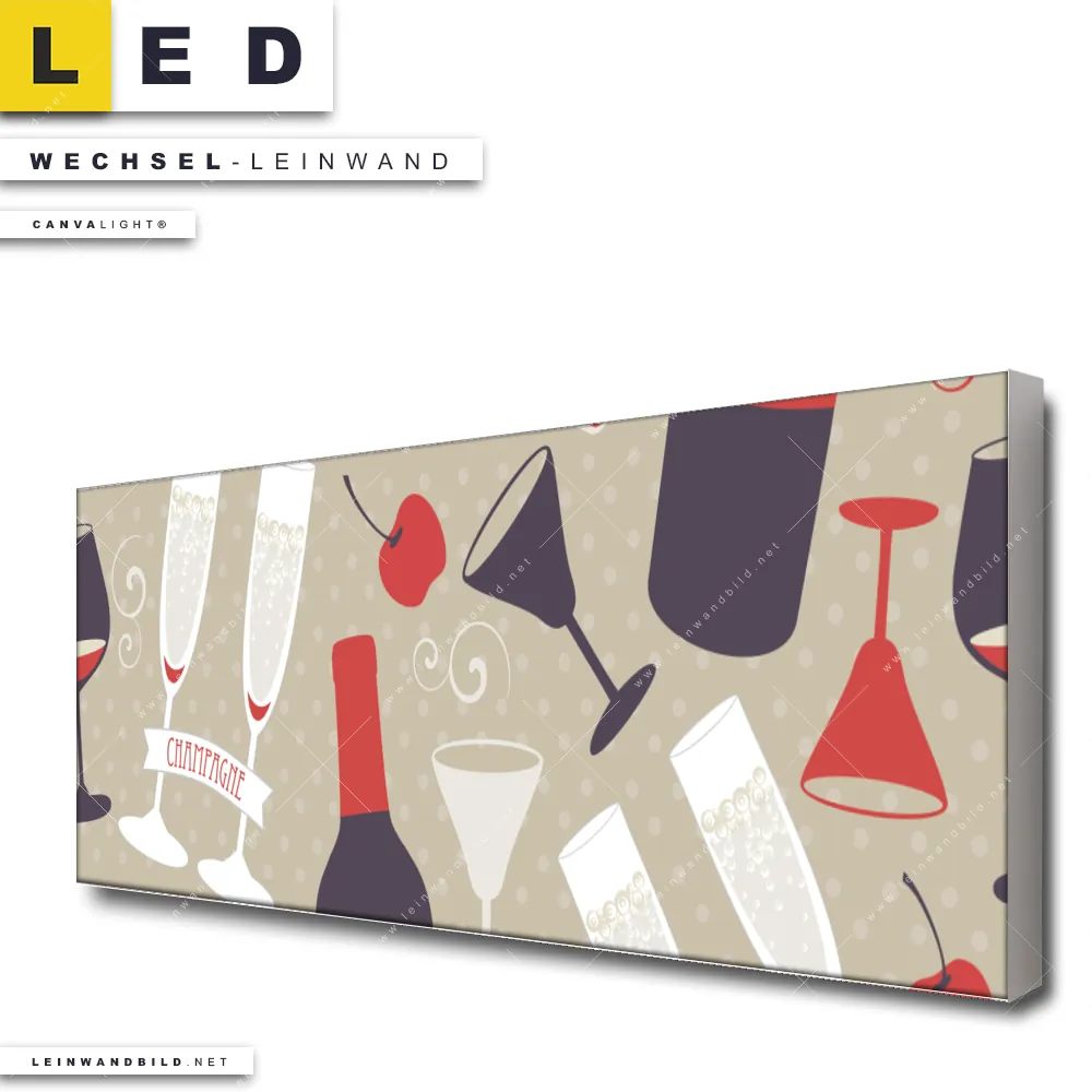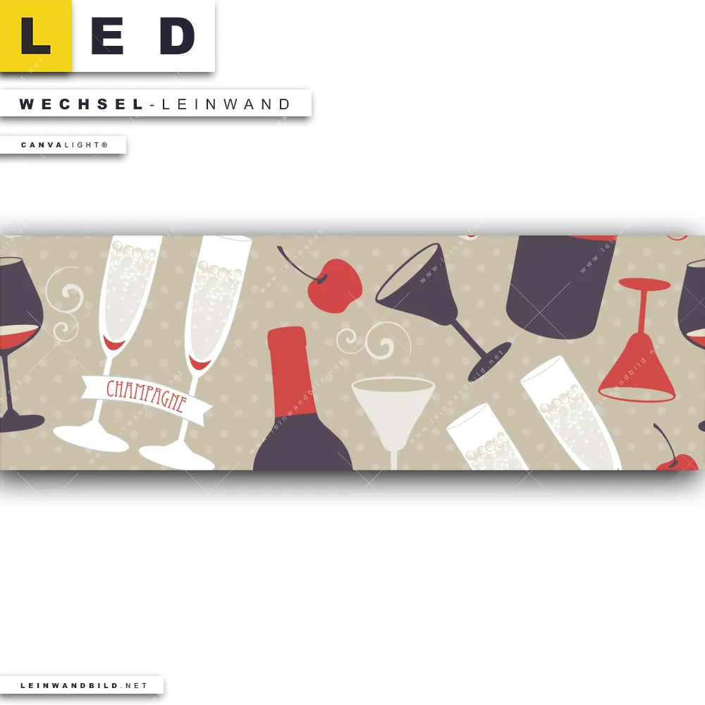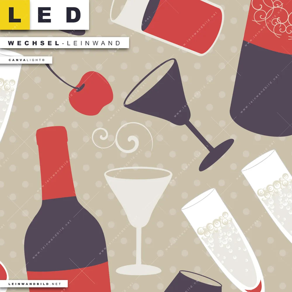 Du bist auf der Suche nach einer Essen - Trinken, Muster - Texturen Wechsel-Leinwand für Dein LED-Leinwandbild im Panorama-Format? Begriffe wie Küche, Wein, Gläser, genießen, Alkohol, Rotwein, Flaschen, modern, Cocktailkirsche, Sekt, Martinigläser, Obst haben Dich auf der Suche nach Deiner Ersatz-Leinwand für dein extra breites LED Wandbild mit wechselbarer Leinwand inspiriert? Farben wie Rot, Beige, Weiss, Lila dürfen auf Deinem neuen Wechselmotiv für Dein XXL Leinwand-LED-Bild nicht fehlen und Leinwände im Modern Art Stil für Leuchtbilder passen perfekt zu Deinem Einrichtungsstil?