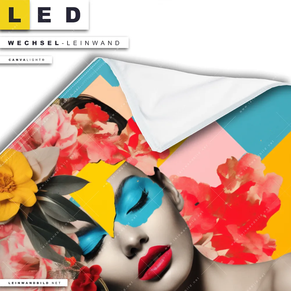 LED Wechsel-Leinwand Canvalight® TEX | Florales Frauenporträt - Fiona | Querformat