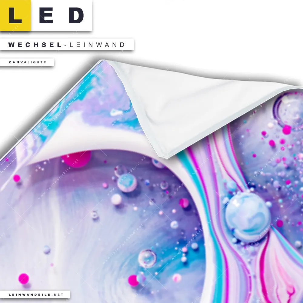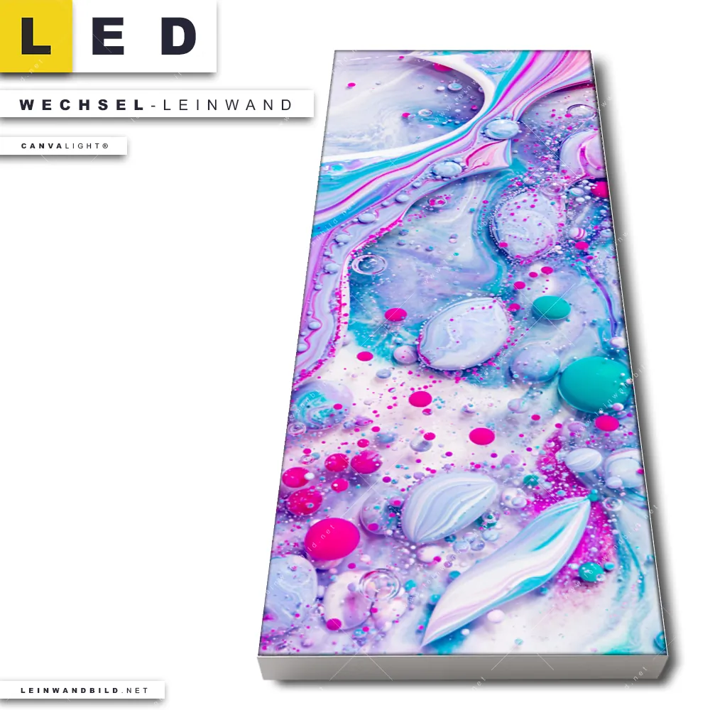 Du bist auf der Suche nach einer Muster - Texturen Wechsel-Leinwand für Dein LED-Leinwandbild im Schmalen Format? Begriffe wie Flüssigkeit, Acryl, flüssig, Farbe, Tropfen, Blasen, Kunst, Tinte, Fluid Art haben Dich auf der Suche nach Deiner Ersatz-Leinwand für dein LED Wandbild im Panorama-Hochformat mit wechselbarer Leinwand inspiriert? Farben wie Weiss, Pink, Lila, Türkis, Hellblau, Rosa dürfen auf Deinem neuen Wechselmotiv für Dein XXL Leinwand-LED-Bild nicht fehlen und Leinwände im Abstrakt, Modern Art Stil für Leuchtbilder passen perfekt zu Deinem Einrichtungsstil?