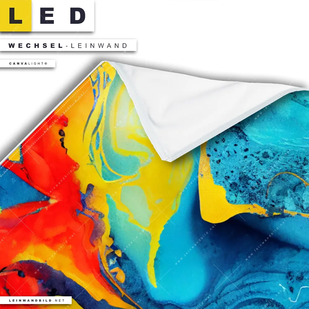 Auf der Suche nach Deinem neuen Wechselmotiv für LED Bilder mit austauschbarer Textil-Leinwand haben Dich Begriffe wie Flüssigkeit, Acryl, flüssig, Farbe, Marmorierung, Tinte, Alkohol, Fluid Art inspiriert? Dann sollte die Wechsel-Leinwand fließende Farbe für Canvalight® TEX LED Leuchtbilder den Weg zu Dir finden.