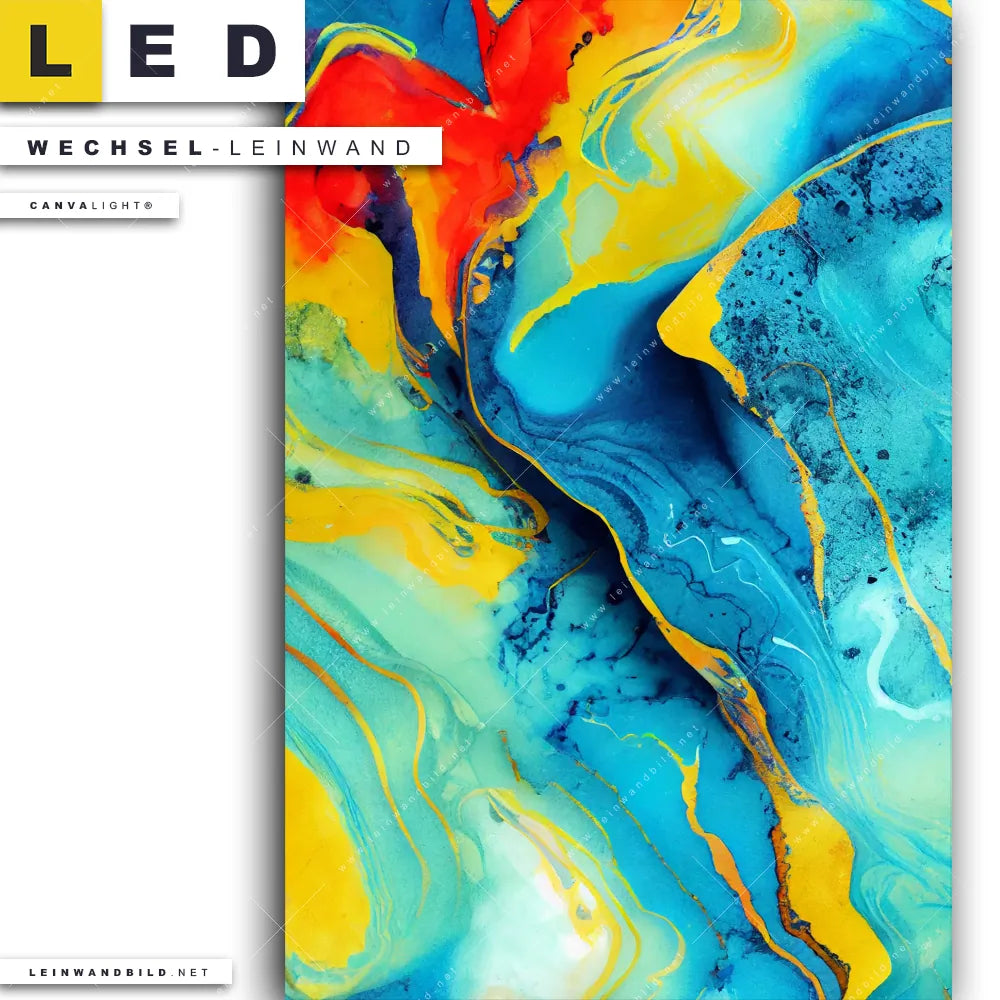 Du bist auf der Suche nach einer Muster - Texturen Wechsel-Leinwand für Dein LED-Leinwandbild im Hochformat? Begriffe wie Flüssigkeit, Acryl, flüssig, Farbe, Marmorierung, Tinte, Alkohol, Fluid Art haben Dich auf der Suche nach Deiner Ersatz-Leinwand für dein LED Wandbild mit wechselbarer Leinwand inspiriert? Farben wie Blau, Türkis, Gelb , Rot dürfen auf Deinem neuen Wechselmotiv für Dein XXL Leinwand-LED-Bild nicht fehlen und Leinwände im Abstrakt, Modern Art Stil für Leuchtbilder passen perfekt zu Deinem Einrichtungsstil?
