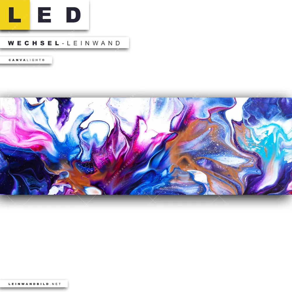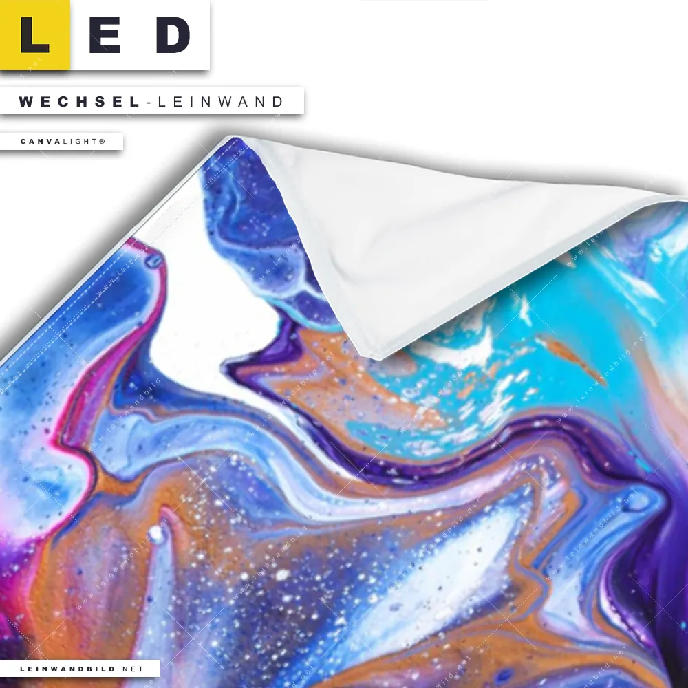 Du bist auf der Suche nach einer Muster - Texturen Wechsel-Leinwand für Dein LED-Leinwandbild im Panorama-Format? Begriffe wie Flüssigkeit, Acryl, flüssig, Farbe, Marmorierung, Tinte, Alkohol, Fluid Art haben Dich auf der Suche nach Deiner Ersatz-Leinwand für dein extra breites LED Wandbild mit wechselbarer Leinwand inspiriert? Farben wie Weiss, Blau, Lila, Türkis dürfen auf Deinem neuen Wechselmotiv für Dein XXL Leinwand-LED-Bild nicht fehlen und Leinwände im Abstrakt, Modern Art Stil für Leuchtbilder passen perfekt zu Deinem Einrichtungsstil?