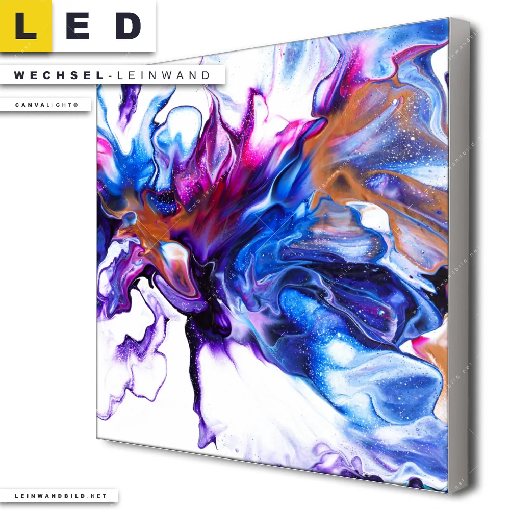 Du bist auf der Suche nach einer Muster - Texturen Wechsel-Leinwand für Dein LED-Leinwandbild im Quadratischen Format? Begriffe wie Flüssigkeit, Acryl, flüssig, Farbe, Marmorierung, Tinte, Alkohol, Fluid Art haben Dich auf der Suche nach Deiner Ersatz-Leinwand für dein LED Wandbild mit wechselbarer Leinwand inspiriert? Farben wie Weiss, Blau, Lila, Türkis dürfen auf Deinem neuen Wechselmotiv für Dein XXL Leinwand-LED-Bild nicht fehlen und Leinwände im Abstrakt, Modern Art Stil für Leuchtbilder passen perfekt zu Deinem Einrichtungsstil?
