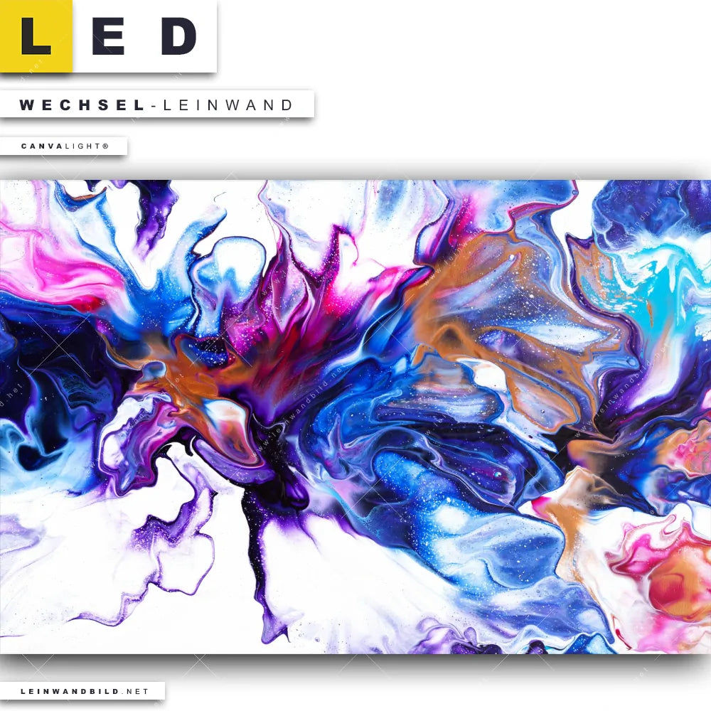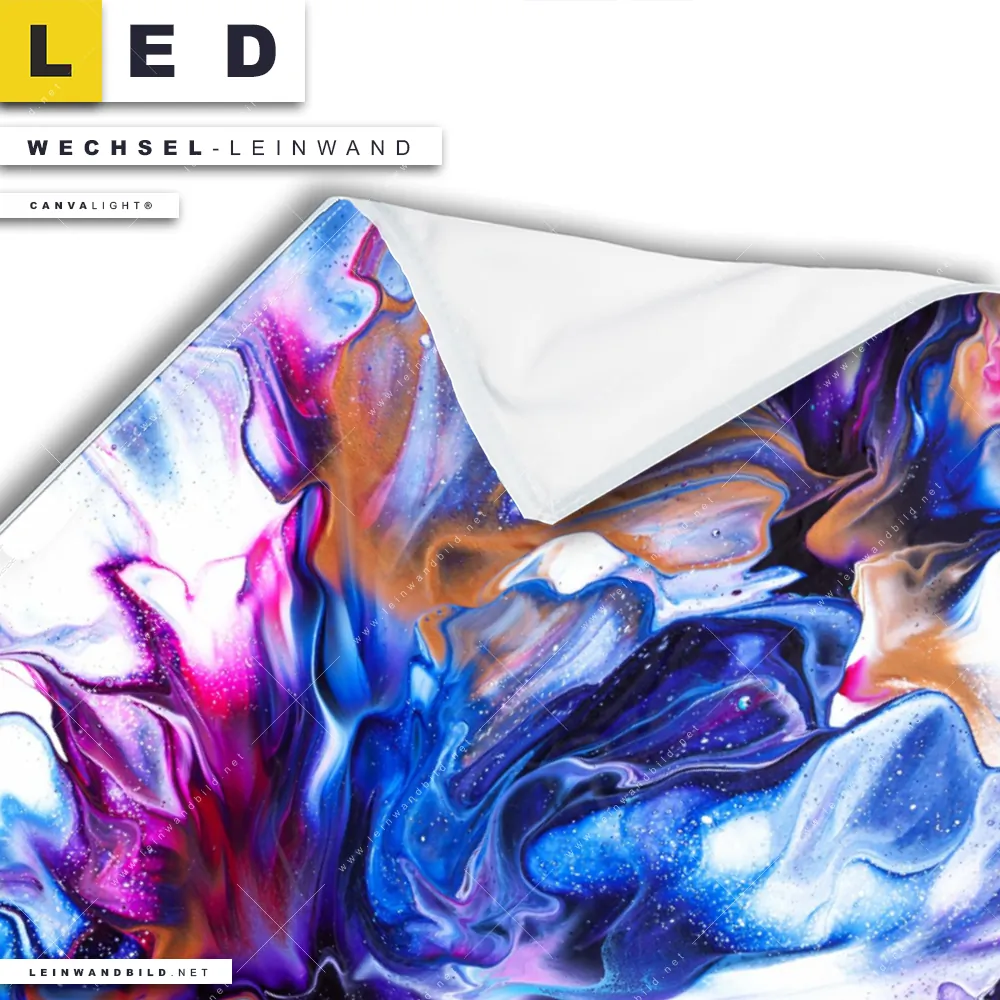 Du bist auf der Suche nach einer Muster - Texturen Wechsel-Leinwand für Dein LED-Leinwandbild im Querformat? Begriffe wie Flüssigkeit, Acryl, flüssig, Farbe, Marmorierung, Tinte, Alkohol, Fluid Art haben Dich auf der Suche nach Deiner Ersatz-Leinwand für dein breites LED Wandbild mit wechselbarer Leinwand inspiriert? Farben wie Weiss, Blau, Lila, Türkis dürfen auf Deinem neuen Wechselmotiv für Dein XXL Leinwand-LED-Bild nicht fehlen und Leinwände im Abstrakt, Modern Art Stil für Leuchtbilder passen perfekt zu Deinem Einrichtungsstil?