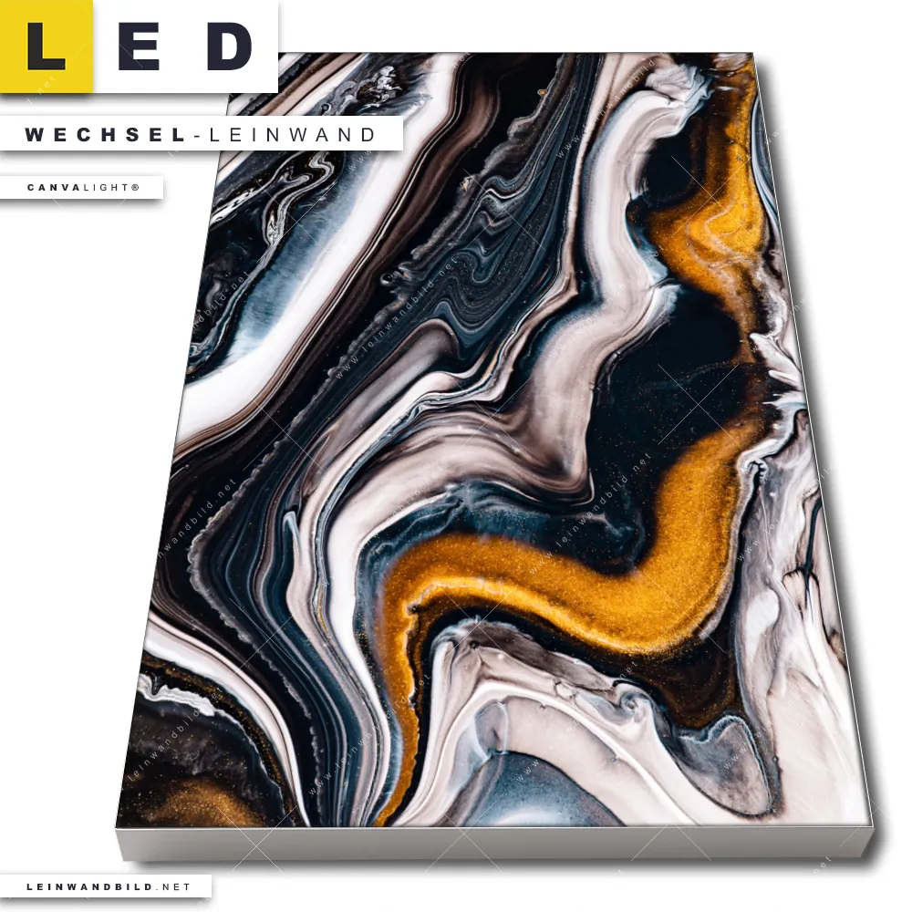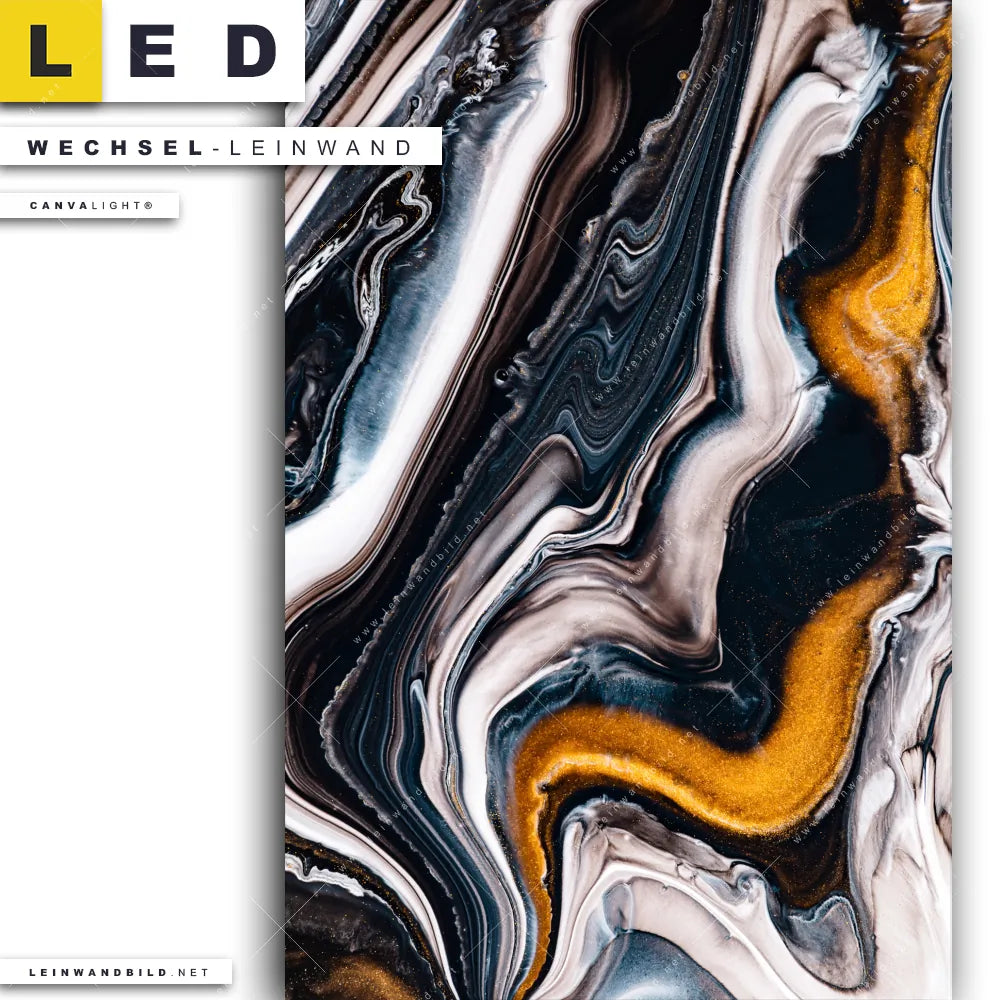 Du bist auf der Suche nach einer Muster - Texturen Wechsel-Leinwand für Dein LED-Leinwandbild im Hochformat? Begriffe wie Flüssigkeit, Acryl, flüssig, Farbe, Marmorierung, Tinte, Alkohol, Goldader, Fluid Art haben Dich auf der Suche nach Deiner Ersatz-Leinwand für dein LED Wandbild mit wechselbarer Leinwand inspiriert? Farben wie Gold, Weiss, Schwarz, Blau dürfen auf Deinem neuen Wechselmotiv für Dein XXL Leinwand-LED-Bild nicht fehlen und Leinwände im Abstrakt, Modern Art Stil für Leuchtbilder passen perfekt zu Deinem Einrichtungsstil?