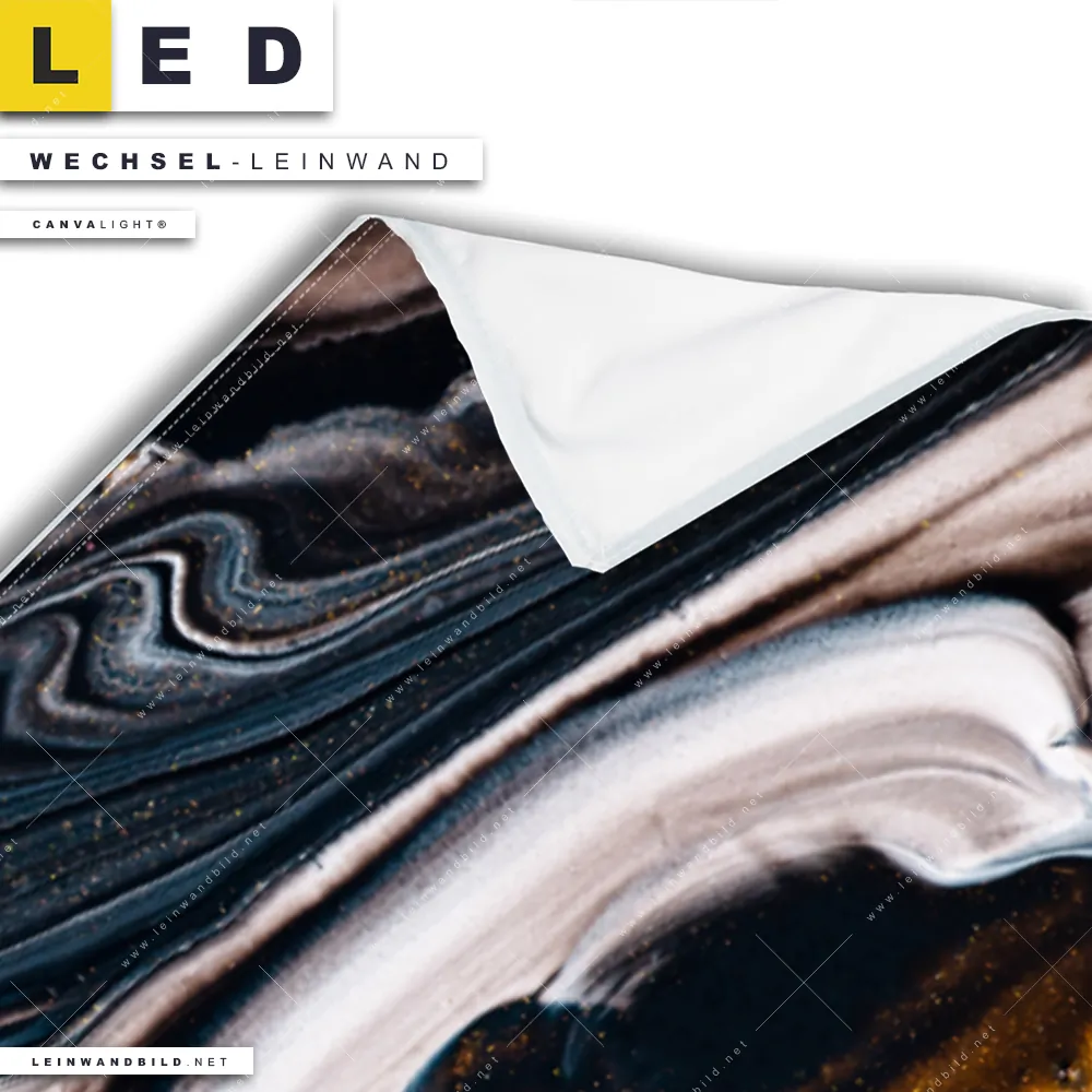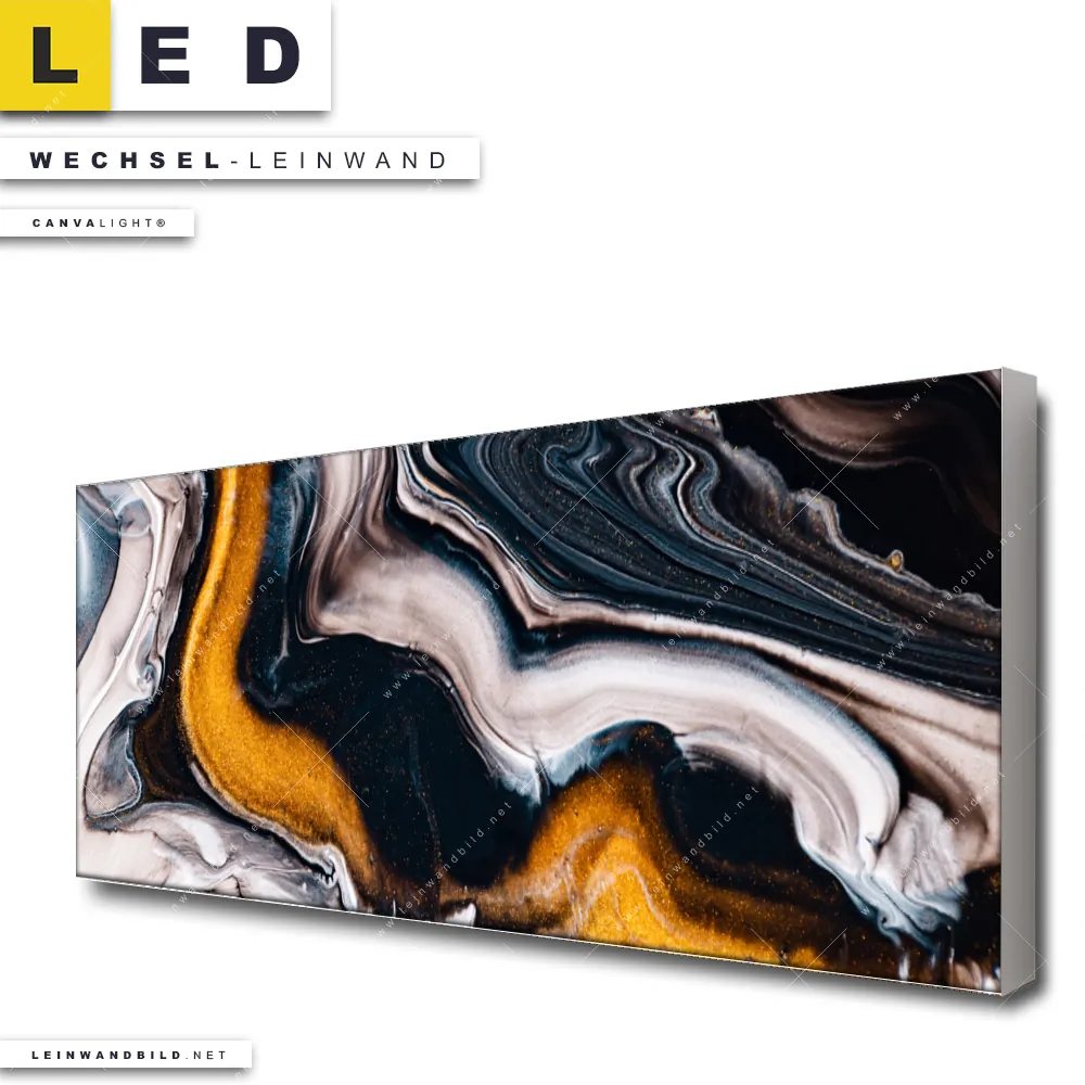 Du bist auf der Suche nach einer Muster - Texturen Wechsel-Leinwand für Dein LED-Leinwandbild im Panorama-Format? Begriffe wie Flüssigkeit, Acryl, flüssig, Farbe, Marmorierung, Tinte, Alkohol, Goldader, Fluid Art haben Dich auf der Suche nach Deiner Ersatz-Leinwand für dein extra breites LED Wandbild mit wechselbarer Leinwand inspiriert? Farben wie Gold, Weiss, Schwarz, Blau dürfen auf Deinem neuen Wechselmotiv für Dein XXL Leinwand-LED-Bild nicht fehlen und Leinwände im Abstrakt, Modern Art Stil für Leuchtbilder passen perfekt zu Deinem Einrichtungsstil?