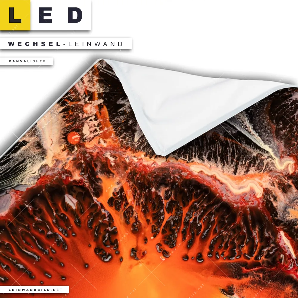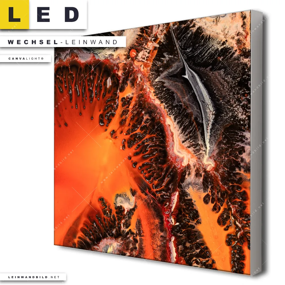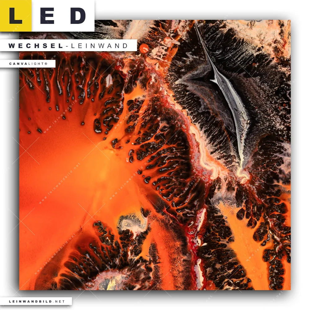 Du bist auf der Suche nach einer Muster - Texturen Wechsel-Leinwand für Dein LED-Leinwandbild im Quadratischen Format? Begriffe wie Flüssigkeit, Acryl, flüssig, Farbe, Marmorierung, Tinte, Alkohol, Lava, Glut, Vulkan, Fluid Art haben Dich auf der Suche nach Deiner Ersatz-Leinwand für dein LED Wandbild mit wechselbarer Leinwand inspiriert? Farben wie Schwarz, Rot, Orange dürfen auf Deinem neuen Wechselmotiv für Dein XXL Leinwand-LED-Bild nicht fehlen und Leinwände im Abstrakt, Modern Art Stil für Leuchtbilder passen perfekt zu Deinem Einrichtungsstil?