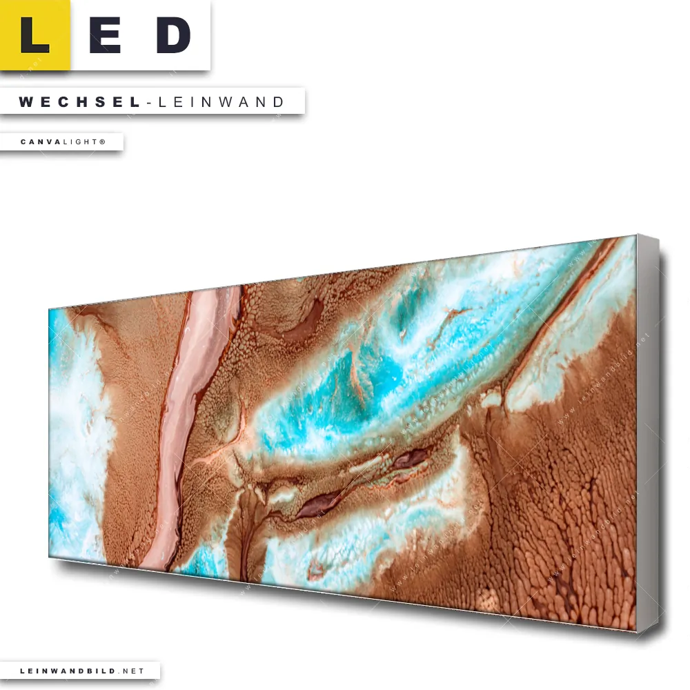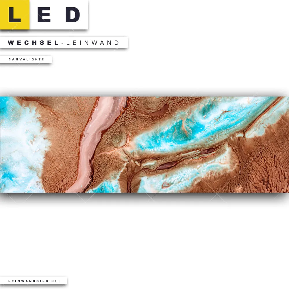 Du bist auf der Suche nach einer Muster - Texturen Wechsel-Leinwand für Dein LED-Leinwandbild im Panorama-Format? Begriffe wie Flüssigkeit, Acryl, flüssig, Farbe, Marmorierung, Tinte, Alkohol, Strand, Meer, Ozean, Sand, Fluid Art haben Dich auf der Suche nach Deiner Ersatz-Leinwand für dein extra breites LED Wandbild mit wechselbarer Leinwand inspiriert? Farben wie Braun, Beige, Türkis, Hellblau dürfen auf Deinem neuen Wechselmotiv für Dein XXL Leinwand-LED-Bild nicht fehlen und Leinwände im Abstrakt, Modern Art Stil für Leuchtbilder passen perfekt zu Deinem Einrichtungsstil?
