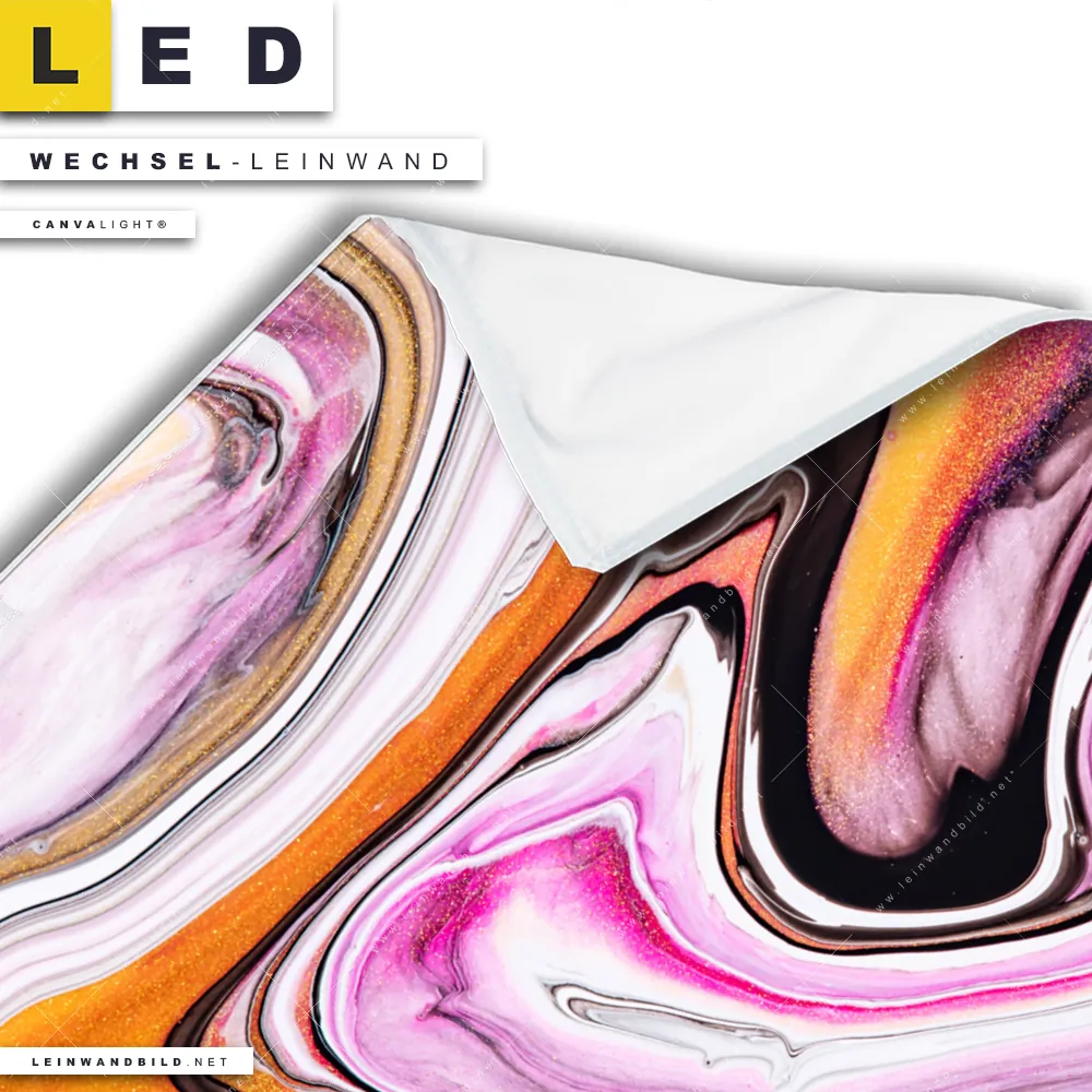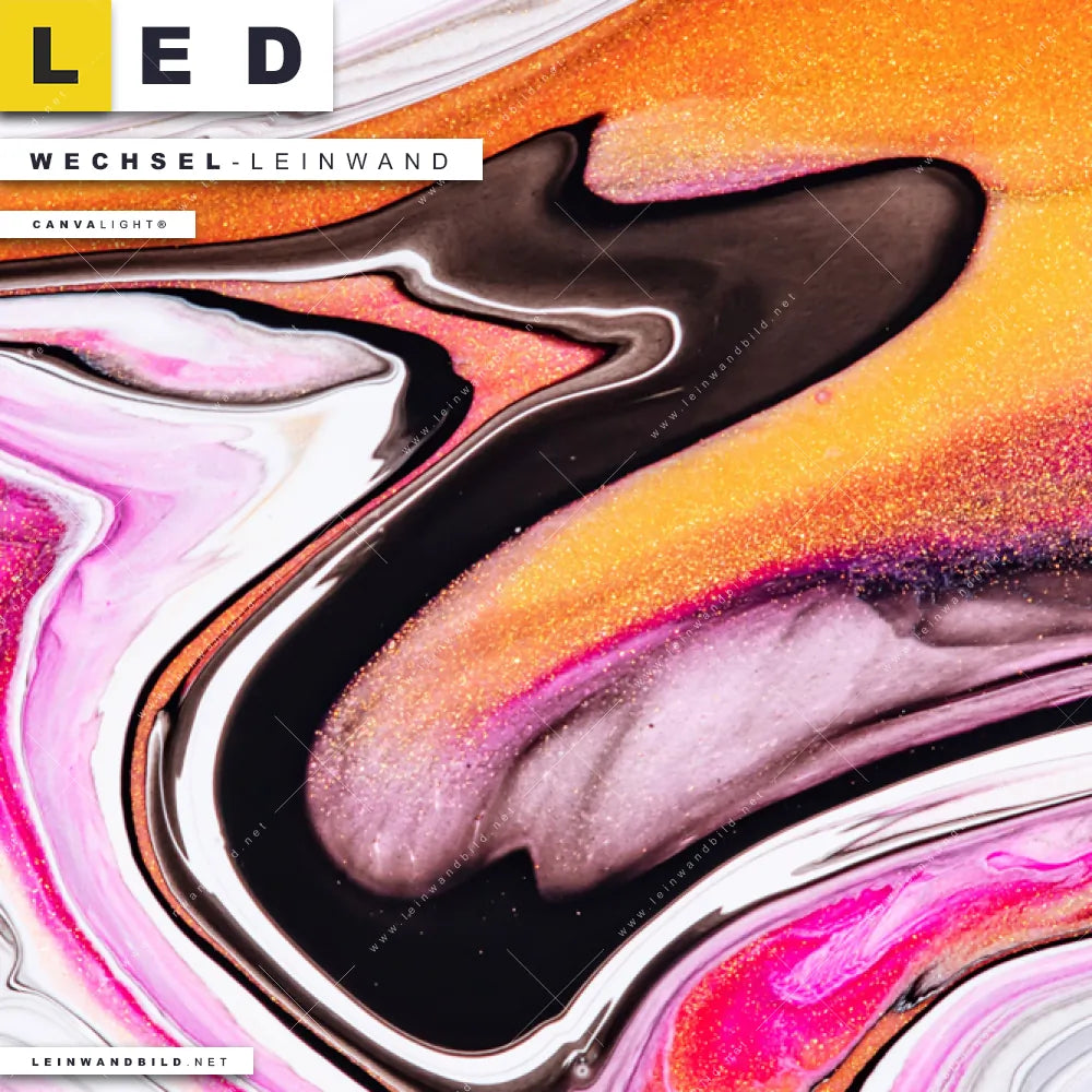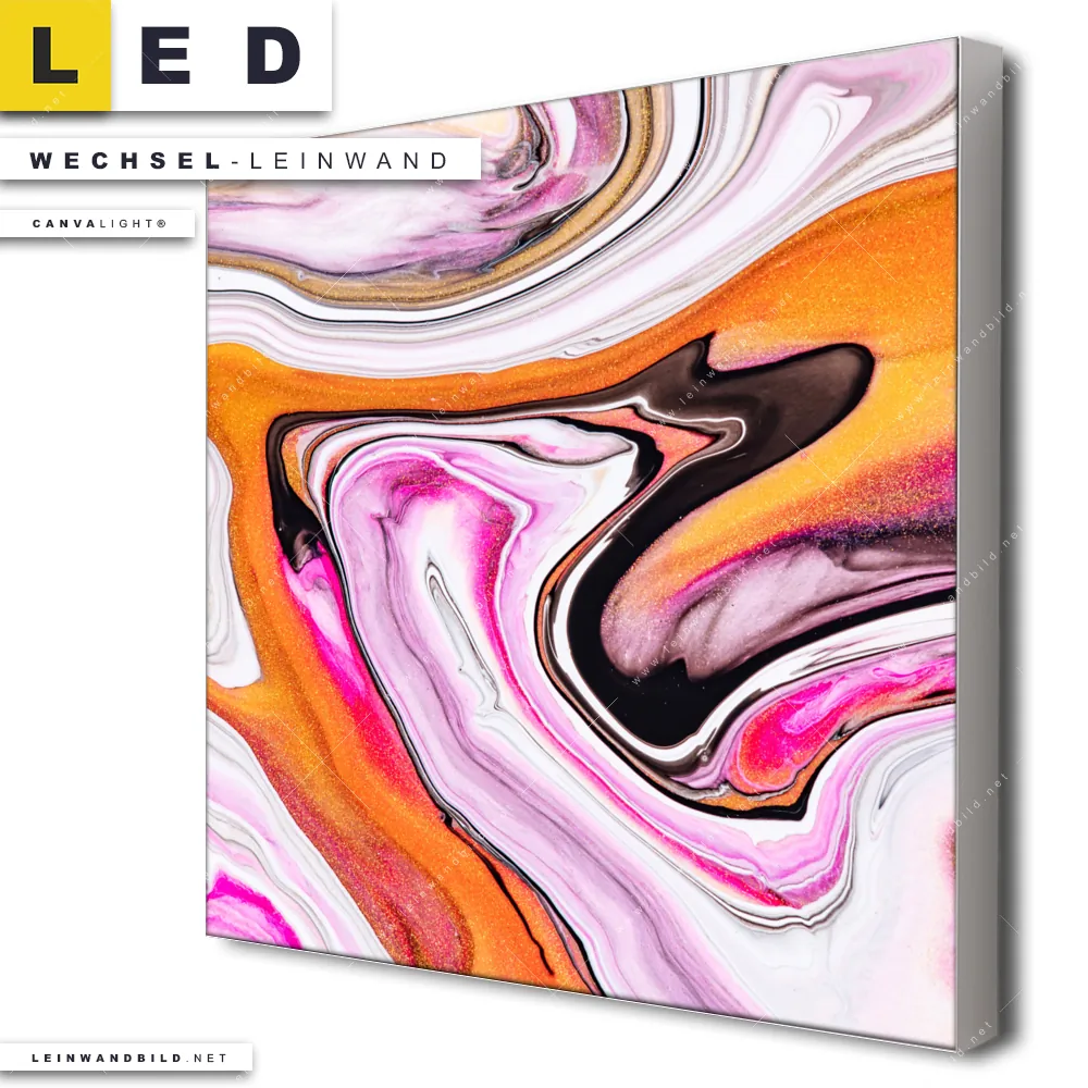 Du bist auf der Suche nach einer Muster - Texturen Wechsel-Leinwand für Dein LED-Leinwandbild im Quadratischen Format? Begriffe wie Flüssigkeit, Acryl, flüssig, Farbe, Marmorierung, Tinte, Alkohol, Fluid Art haben Dich auf der Suche nach Deiner Ersatz-Leinwand für dein LED Wandbild mit wechselbarer Leinwand inspiriert? Farben wie Orange, Gold, Weiss, Pink, Rosa dürfen auf Deinem neuen Wechselmotiv für Dein XXL Leinwand-LED-Bild nicht fehlen und Leinwände im Abstrakt, Modern Art Stil für Leuchtbilder passen perfekt zu Deinem Einrichtungsstil?