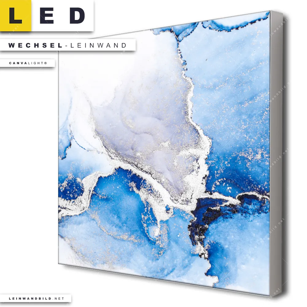 Du bist auf der Suche nach einer Muster - Texturen Wechsel-Leinwand für Dein LED-Leinwandbild im Quadratischen Format? Begriffe wie Flüssigkeit, Acryl, flüssig, Farbe, Marmorierung, Tinte, Alkohol, Winter, Marmor, Fluid Art haben Dich auf der Suche nach Deiner Ersatz-Leinwand für dein LED Wandbild mit wechselbarer Leinwand inspiriert? Farben wie Weiss, Blau, Silber dürfen auf Deinem neuen Wechselmotiv für Dein XXL Leinwand-LED-Bild nicht fehlen und Leinwände im Abstrakt, Modern Art Stil für Leuchtbilder passen perfekt zu Deinem Einrichtungsstil?