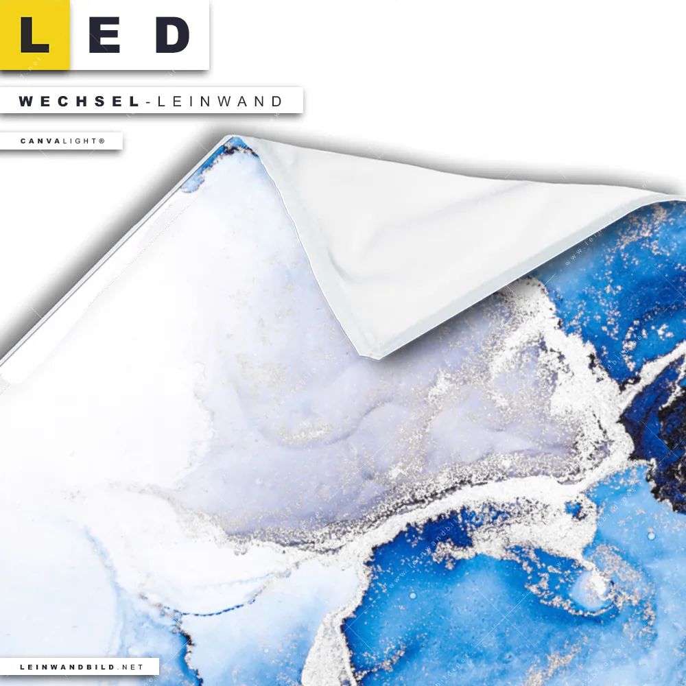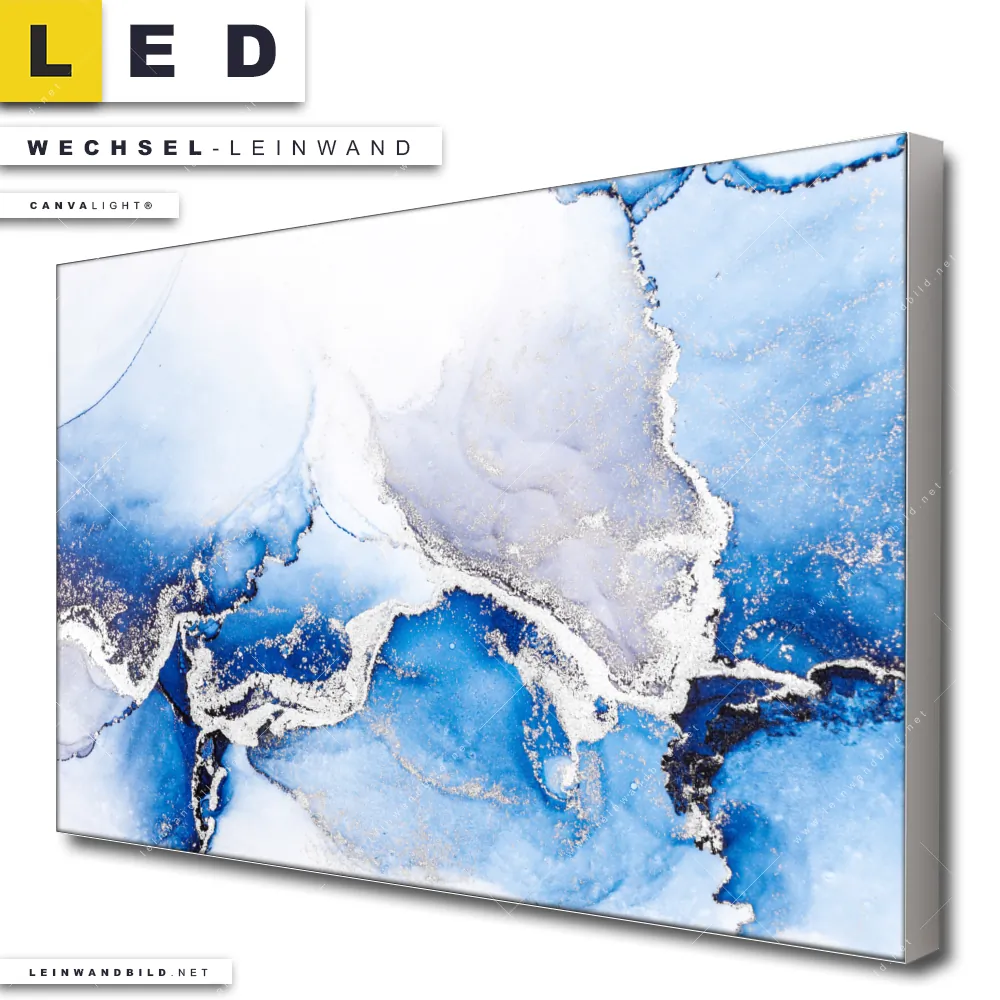 Du bist auf der Suche nach einer Muster - Texturen Wechsel-Leinwand für Dein LED-Leinwandbild im Querformat? Begriffe wie Flüssigkeit, Acryl, flüssig, Farbe, Marmorierung, Tinte, Alkohol, Winter, Marmor, Fluid Art haben Dich auf der Suche nach Deiner Ersatz-Leinwand für dein breites LED Wandbild mit wechselbarer Leinwand inspiriert? Farben wie Weiss, Blau, Silber dürfen auf Deinem neuen Wechselmotiv für Dein XXL Leinwand-LED-Bild nicht fehlen und Leinwände im Abstrakt, Modern Art Stil für Leuchtbilder passen perfekt zu Deinem Einrichtungsstil?