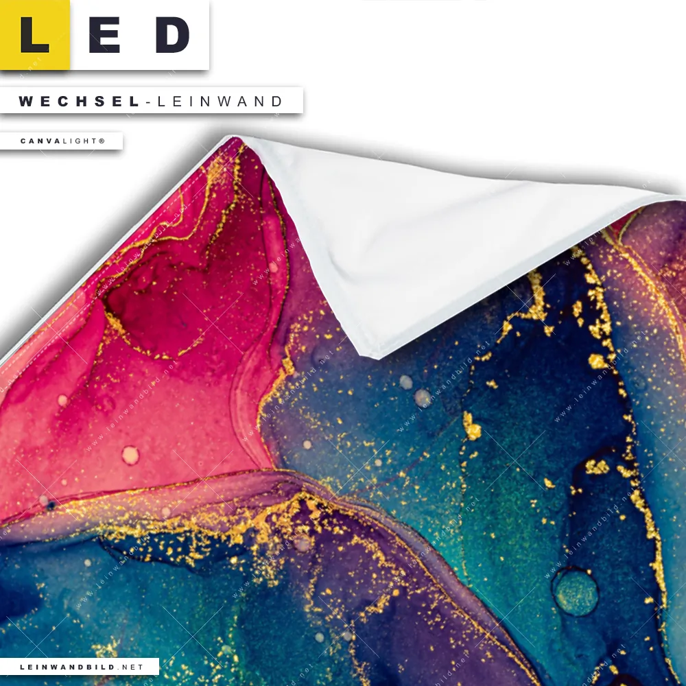Du bist auf der Suche nach einer Muster - Texturen Wechsel-Leinwand für Dein LED-Leinwandbild im Hochformat? Begriffe wie Marmor, Flüssigkeit, Acryl, flüssig, Farbe, Marmorierung, Tinte, Fluid Art haben Dich auf der Suche nach Deiner Ersatz-Leinwand für dein LED Wandbild mit wechselbarer Leinwand inspiriert? Farben wie Lila, Blau, Gold, Rot, Türkis, Orange dürfen auf Deinem neuen Wechselmotiv für Dein XXL Leinwand-LED-Bild nicht fehlen und Leinwände im Abstrakt, Modern Art Stil für Leuchtbilder passen perfekt zu Deinem Einrichtungsstil?