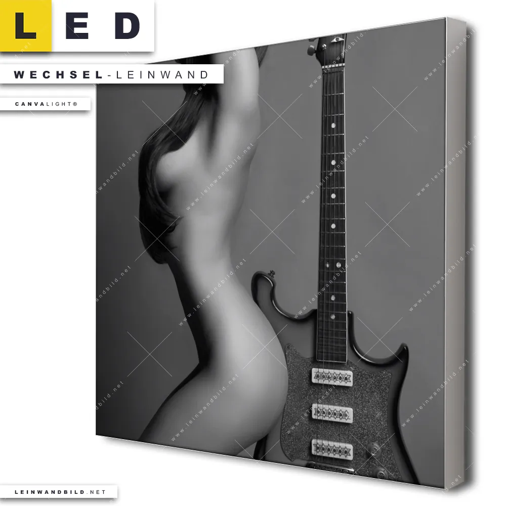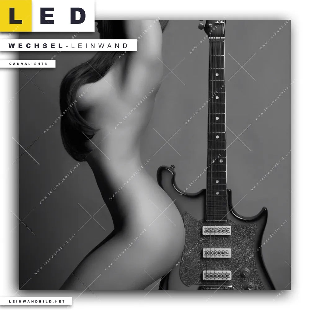 Du bist auf der Suche nach einer Erotik - Akt, Porträts - Menschen Wechsel-Leinwand für Dein LED-Leinwandbild im Quadratischen Format? Begriffe wie Frau, Erotik, modern, Beauty, Körper, Body, Akt, Musik, Gitarre, Instrument haben Dich auf der Suche nach Deiner Ersatz-Leinwand für dein LED Wandbild mit wechselbarer Leinwand inspiriert? Farben wie Schwarz, Weiss dürfen auf Deinem neuen Wechselmotiv für Dein XXL Leinwand-LED-Bild nicht fehlen und Leinwände im Natürlich - Realistisch, Schwarz - Weiss Stil für Leuchtbilder passen perfekt zu Deinem Einrichtungsstil?