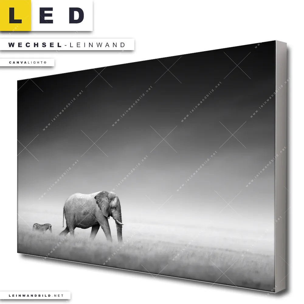 Du bist auf der Suche nach einer Tierwelt, Landschaften Wechsel-Leinwand für Dein LED-Leinwandbild im Querformat? Begriffe wie Afrika, wild, Safari, Zebra, Elefant, Savanne, Steppe haben Dich auf der Suche nach Deiner Ersatz-Leinwand für dein breites LED Wandbild mit wechselbarer Leinwand inspiriert? Farben wie Weiss, Schwarz dürfen auf Deinem neuen Wechselmotiv für Dein XXL Leinwand-LED-Bild nicht fehlen und Leinwände im Natürlich - Realistisch, Schwarz - Weiss Stil für Leuchtbilder passen perfekt zu Deinem Einrichtungsstil?