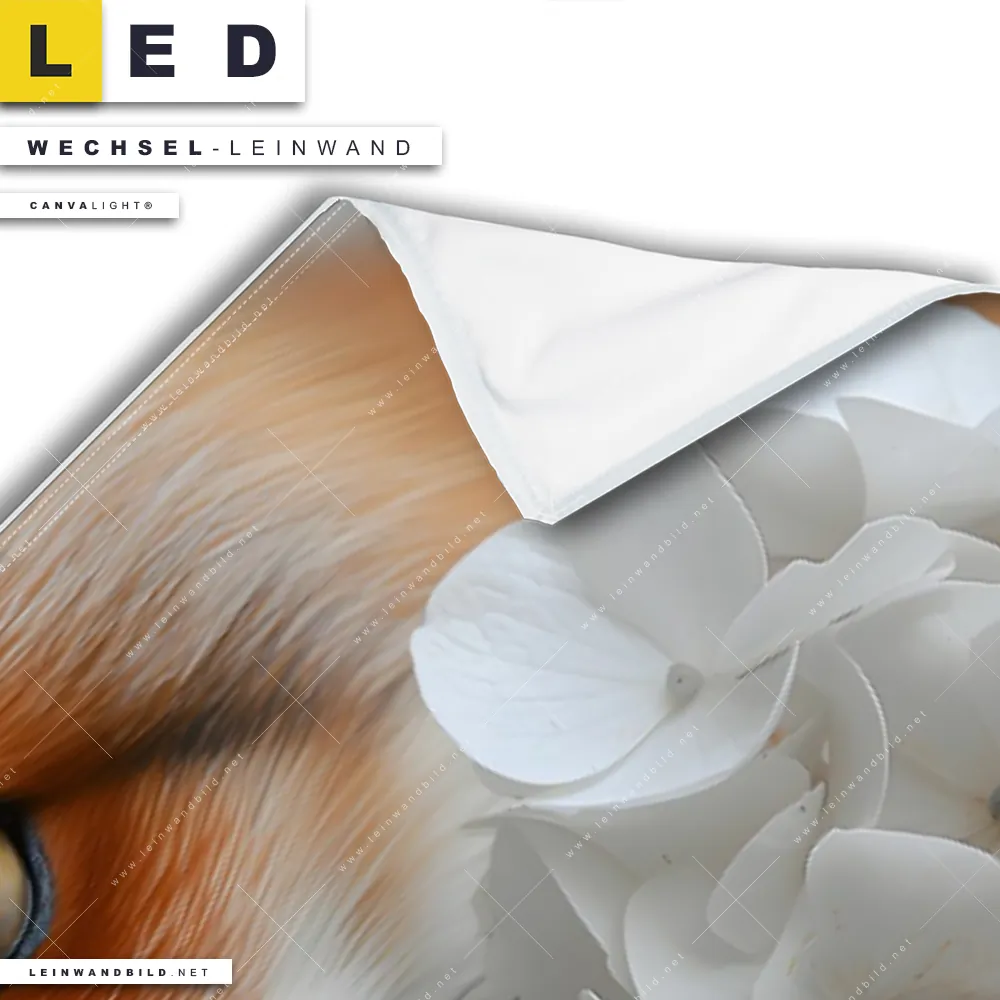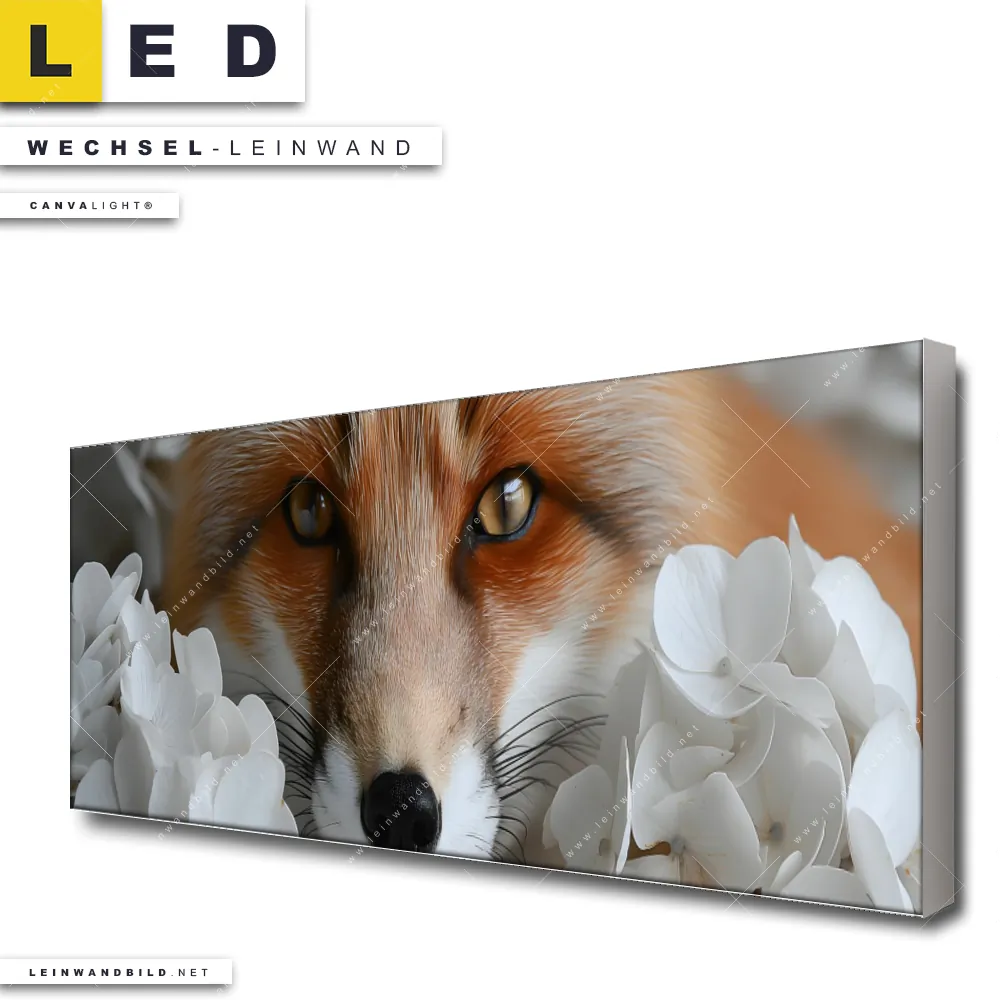 LED Wechsel-Leinwand Canvalight® TEX | Friedlicher Fuchs und Blumen | Panorama