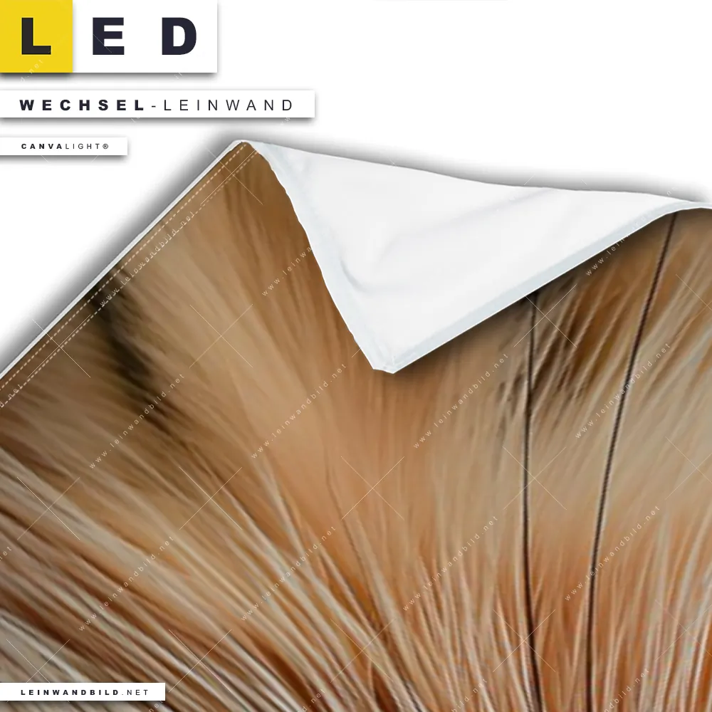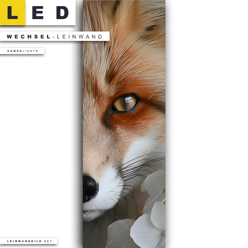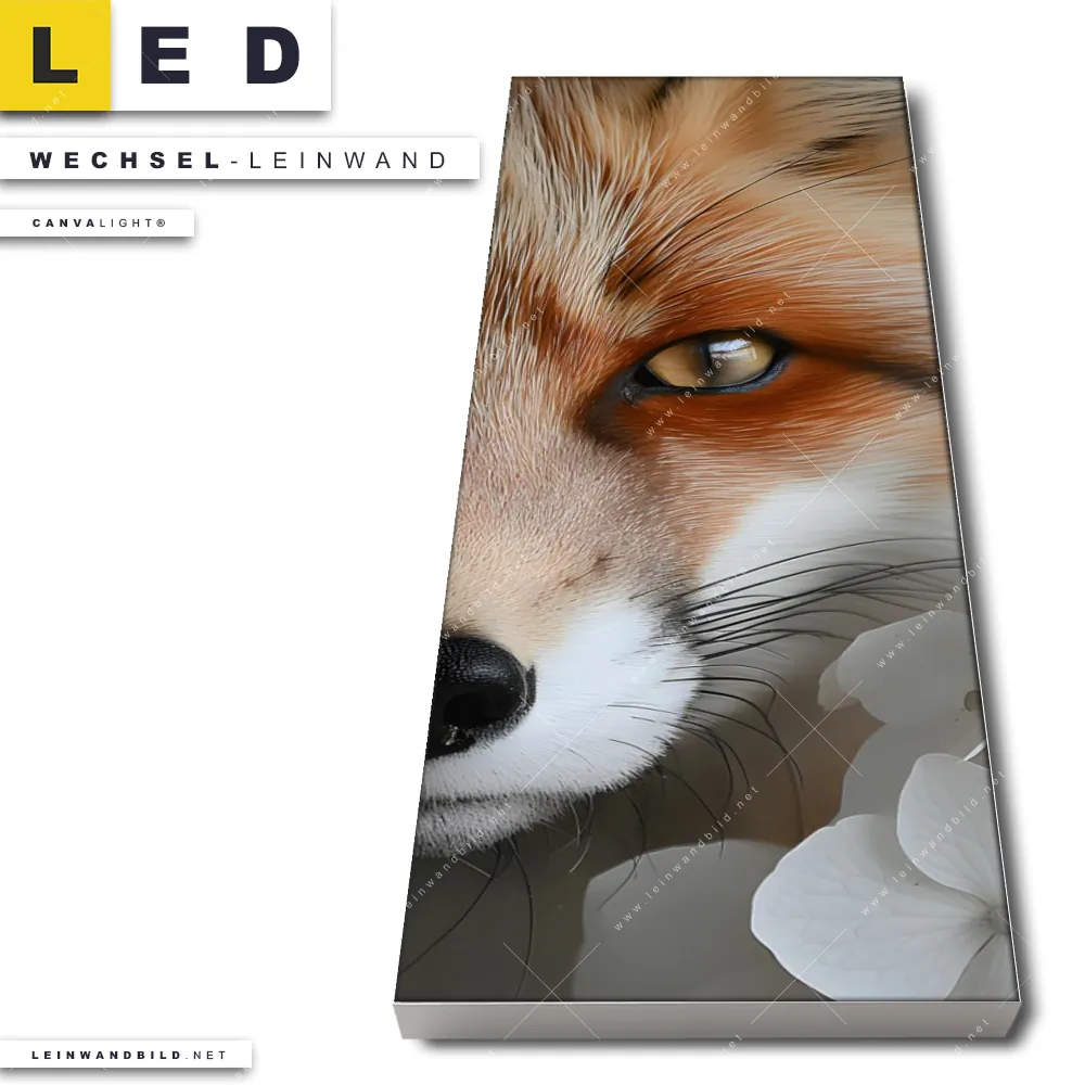 LED Wechsel-Leinwand Canvalight® TEX | Friedlicher Fuchs und Blumen | Schmal