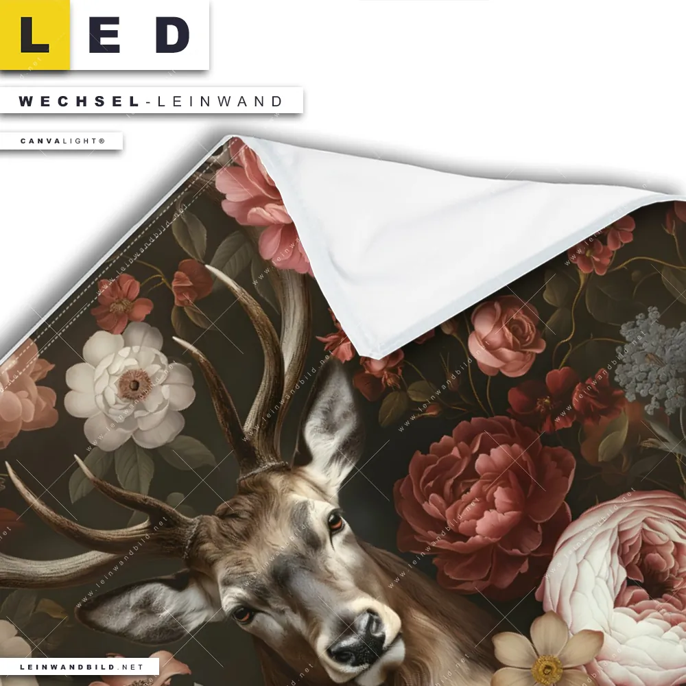 LED Wechsel-Leinwand Canvalight® TEX | Friedlicher Hirsch und Blüten | Querformat